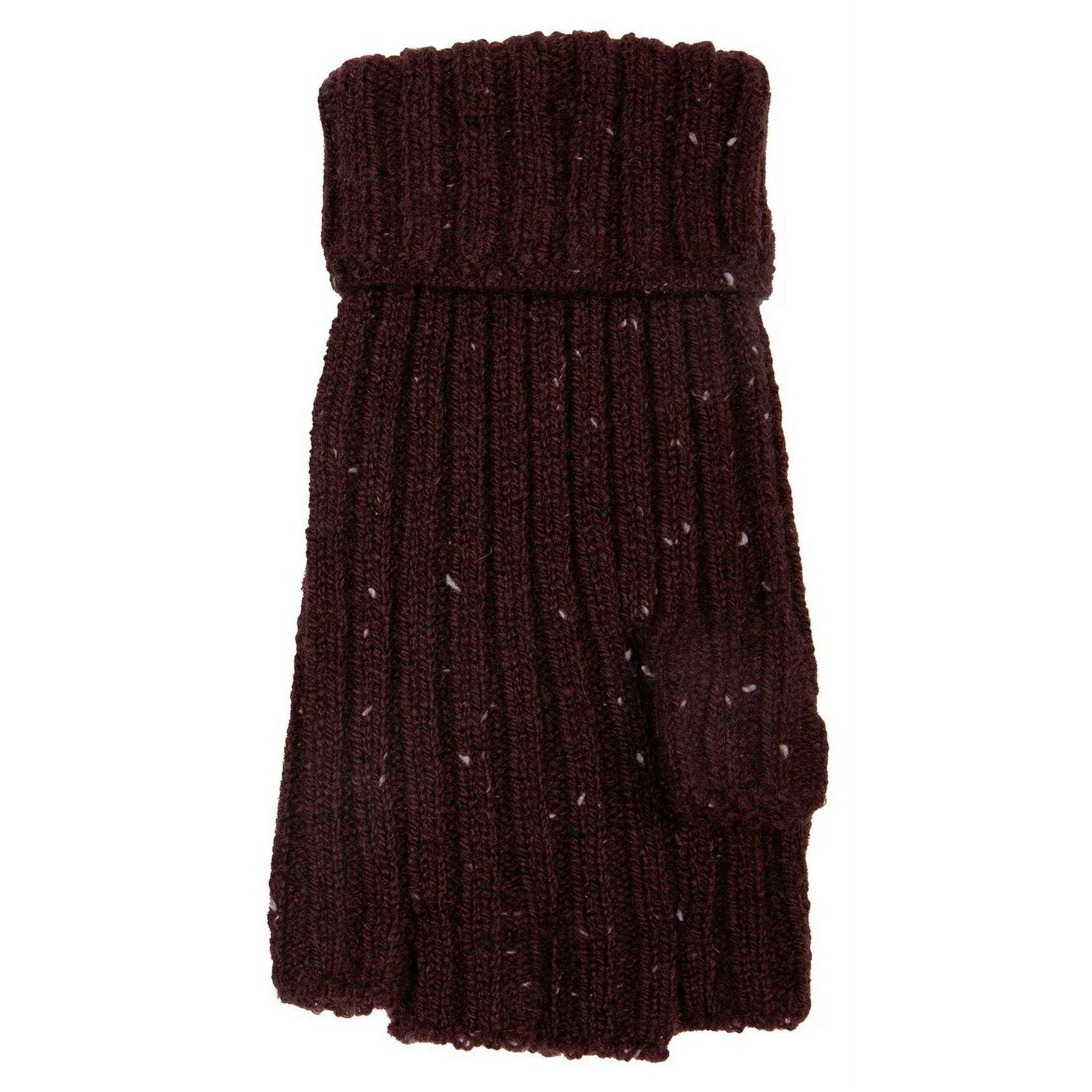 Dents Ribbed Knit Fingerless Gloves - Burgundy