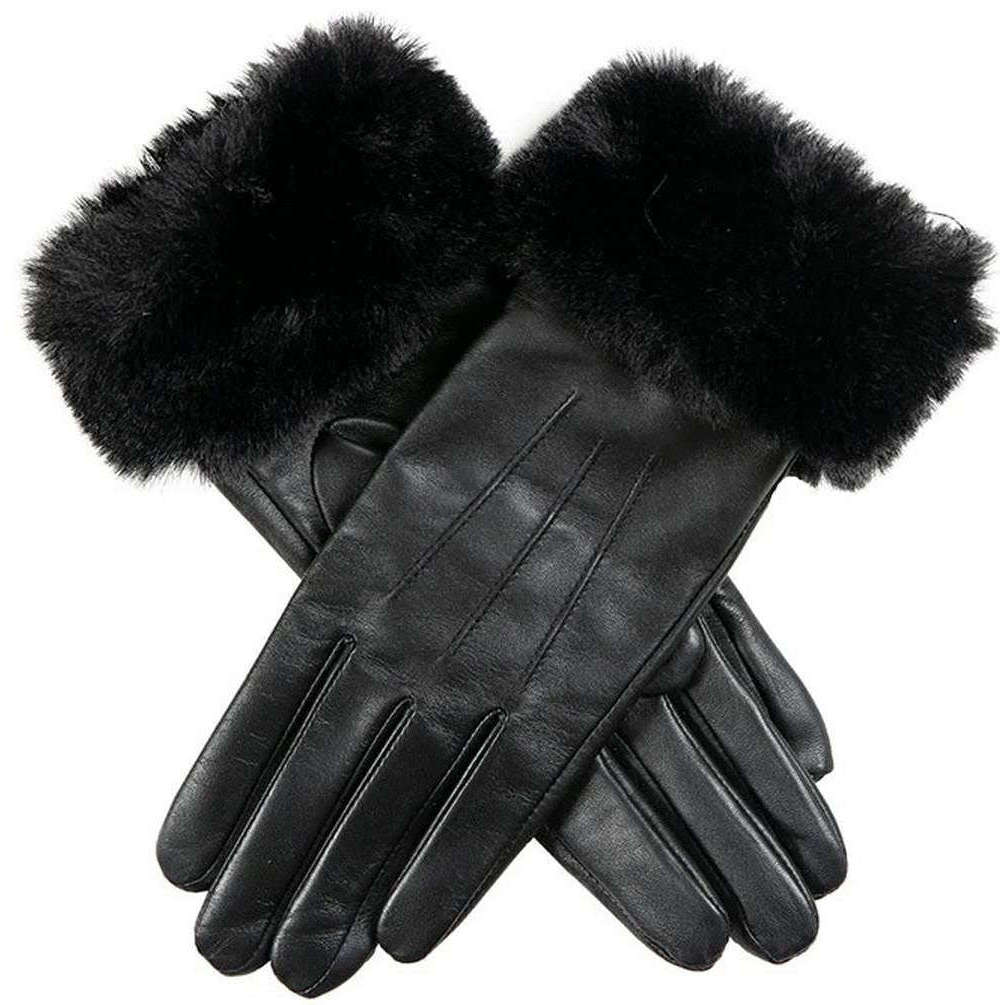 Dents Sarah Hairsheep Leather Faux Cuff Gloves - Black