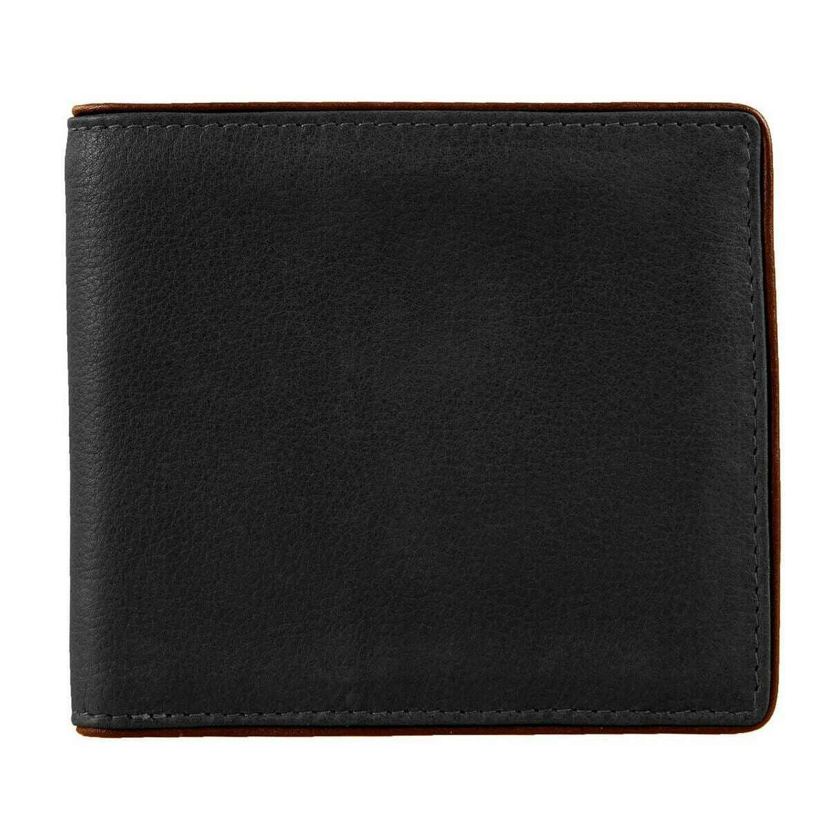 Dents Severn Leather RFID Blocking Coin Bifold Wallet - Black/Dark Tan