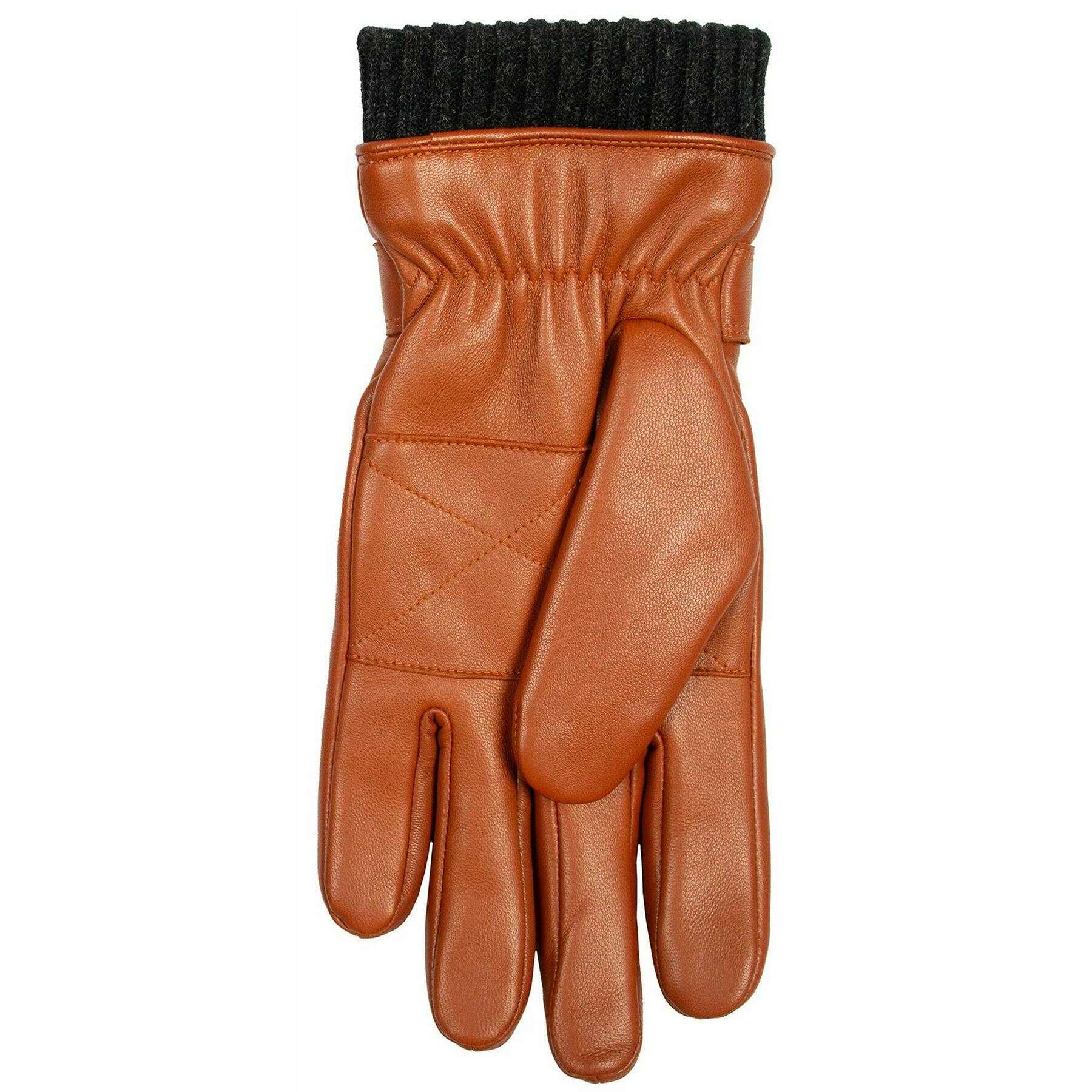 These well made men's skipton knitted cuff stitch detail leather gloves from Dents come in a highway tan colour and are manufactured from outer: 100% hairsheep leather, lining: 100% polyester fleece. Also the highway tan gloves are designed in a plain pattern, All the gloves come complete with dents tags. The Dents Skipton Knitted Cuff Stitch Detail Leather Gloves - Highway Tan have been crafted in the biker style combining a cool touch with comfort for riding or for plans during these colder seasons. Crafted with high-quality hair sheep leather ensures a water-resistant and long-lasting wear whilst having a soft faux fur lining for warmth and a snug wear. The knitted cuffs, elasticated wrist and the strap and roller fastening ensures a secure fit whilst ensuring the warmth is kept in and the cold is kept out.
