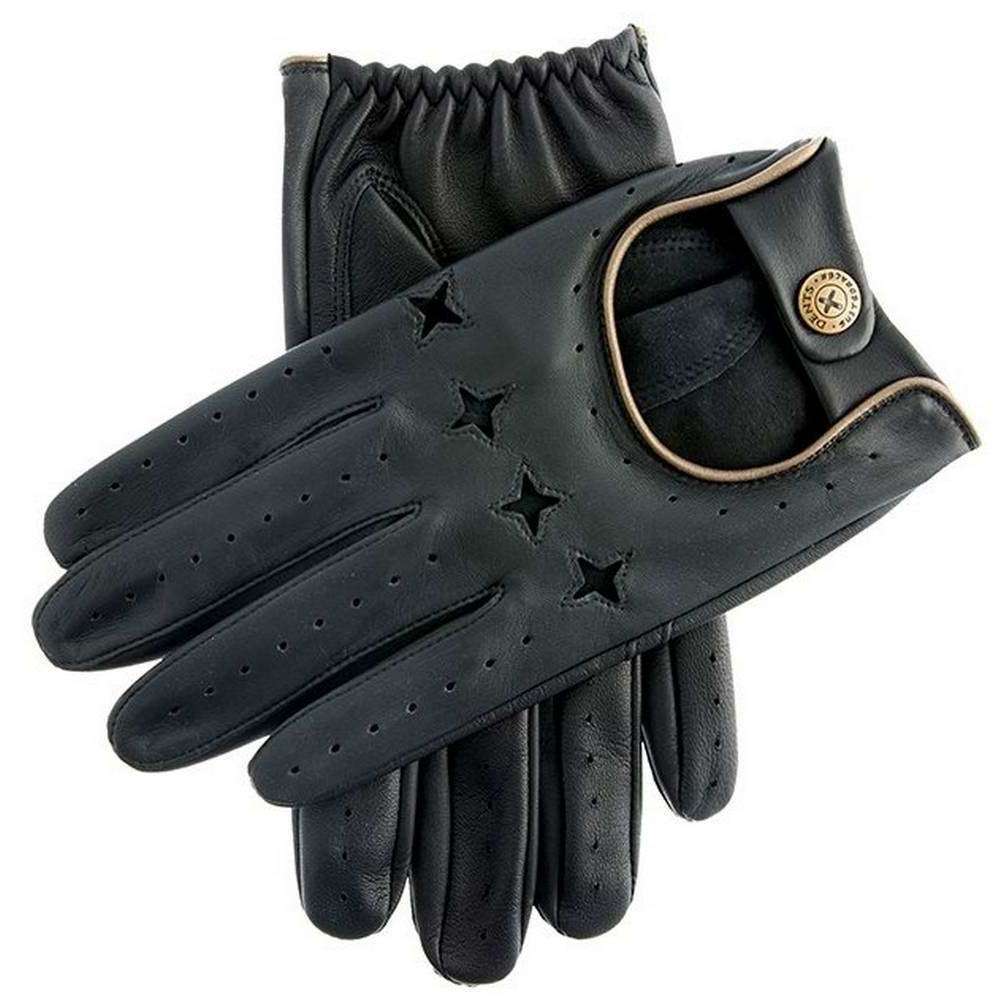 These men's the suited racer touchscreen driving gloves by the brand Dents are made from 100% hairsheep leather and are showcased in black. Also the black/gold gloves are designed in a 2-tone pattern, All the gloves come complete with dents tags. The Dents The Suited Racer Touchscreen Driving Gloves - Black/Gold have been inspired by the classic driving gloves, these feature traditional knuckle hole but in the style of crosses. Guaranteed not to disappoint, its elasticated wrist and button strap will make sure they stay comfortable from day to night. These gloves have been unlined for a closer fit and better grip, making them ideal to have handy in your glove compartment.
