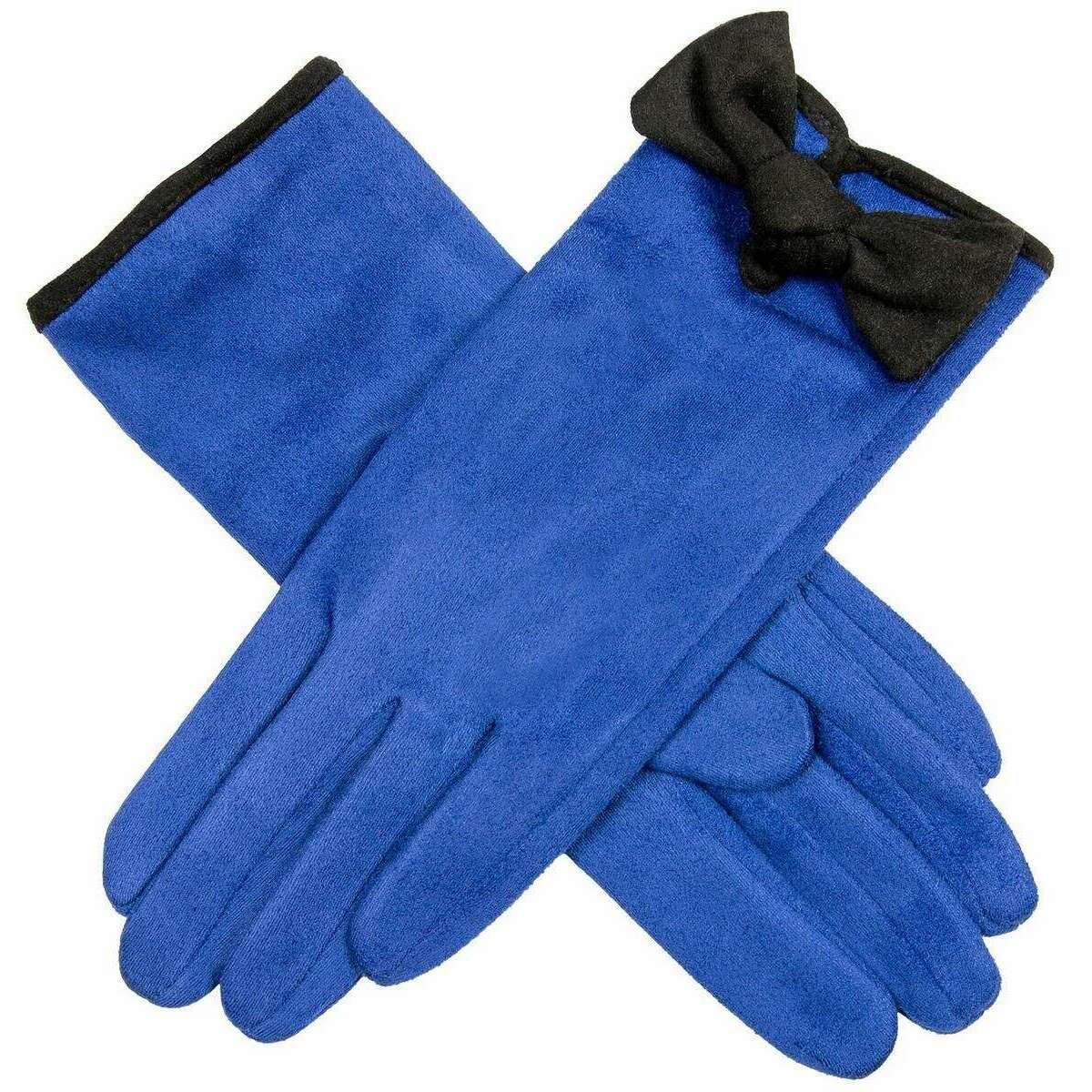 Dents Velour Lined Faux Suede Bow Gloves - Cobalt Blue/Black