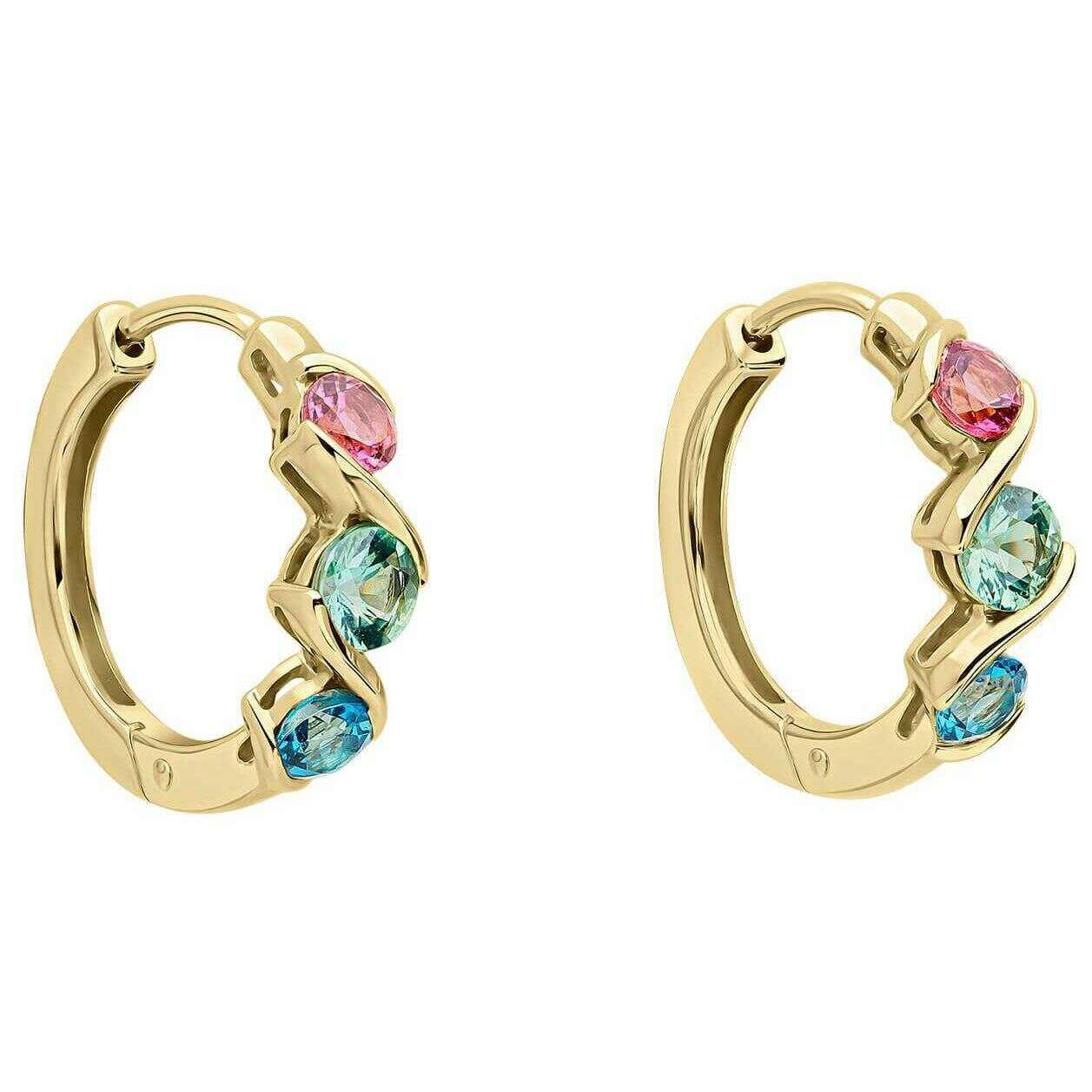 Elements Gold Amalfi Three Colour Twist 9ct Gold Earrings - Green/Pink/Blue