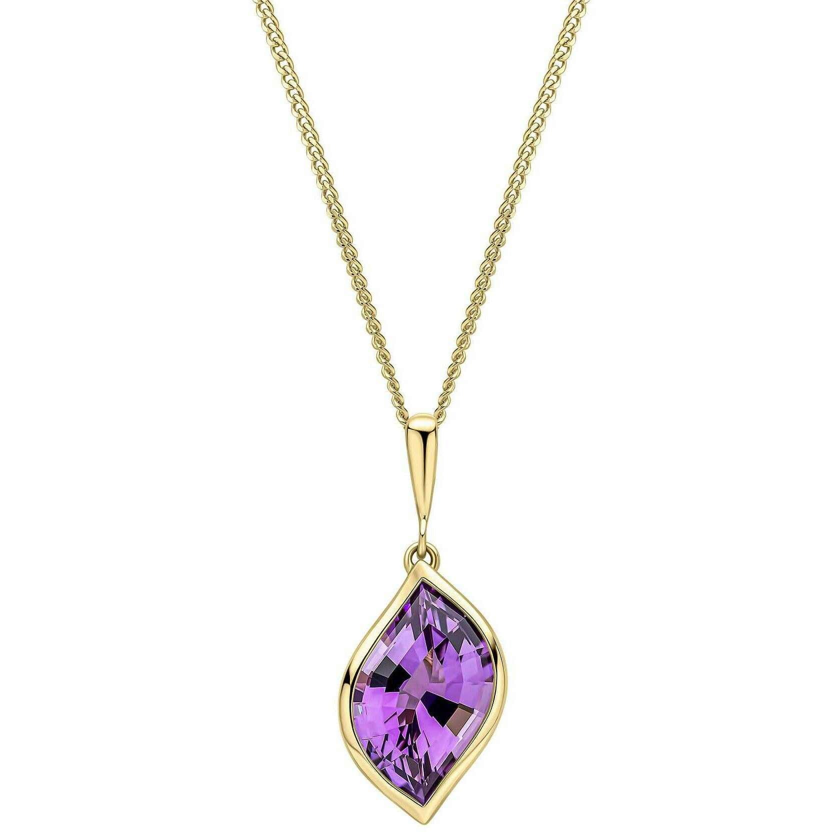 Elements Gold Flame Cut Amethyst 9ct Gold Pendant - Gold/Purple