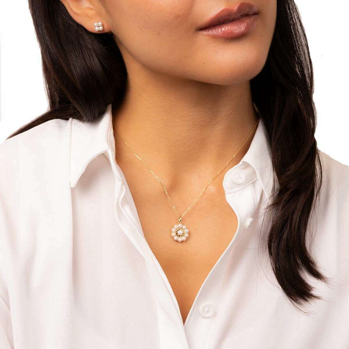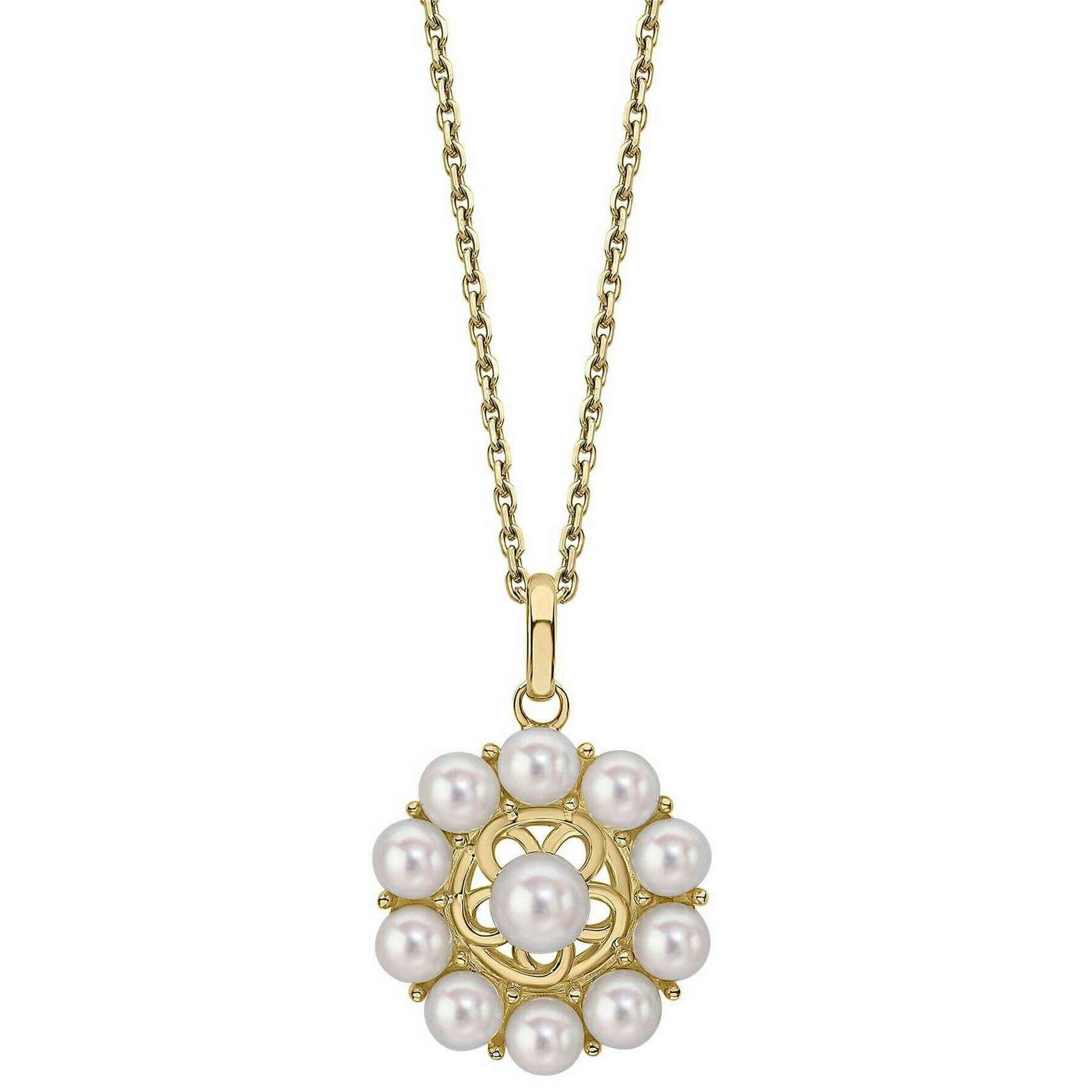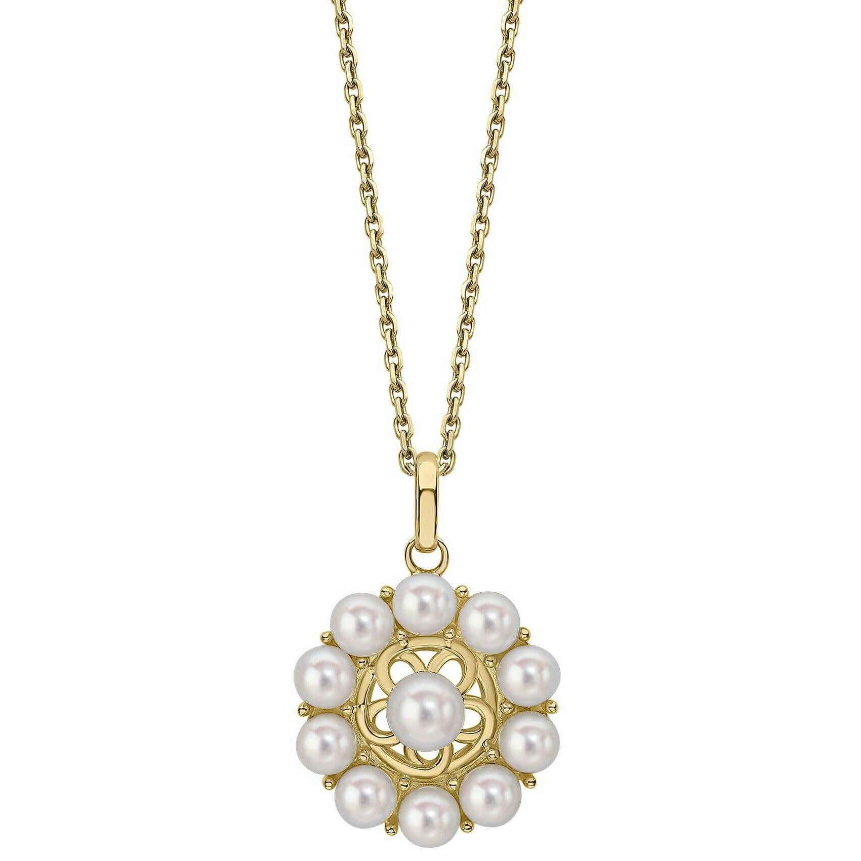 Elements Gold Floral Freshwater Pearl 9ct Gold Pendant - Gold/White