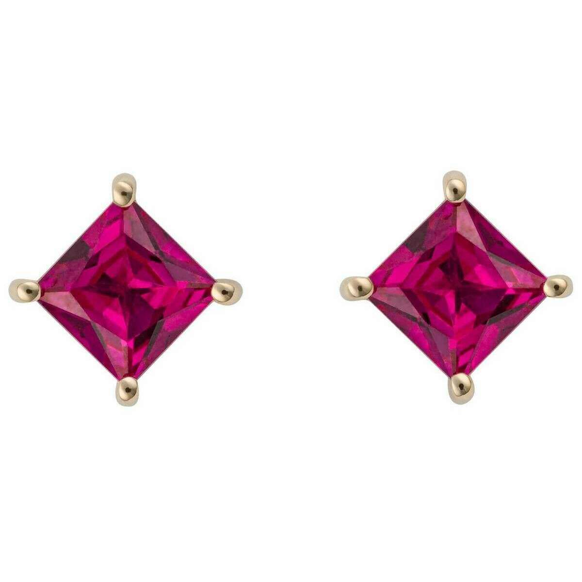 Elements Gold Princess Cut Created Ruby Earrings - Red/Gold