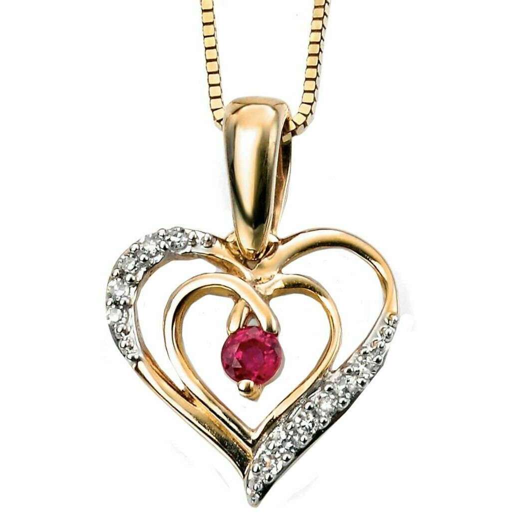 Elements Gold Ruby and Diamond Open Heart Pendant - Red/Gold