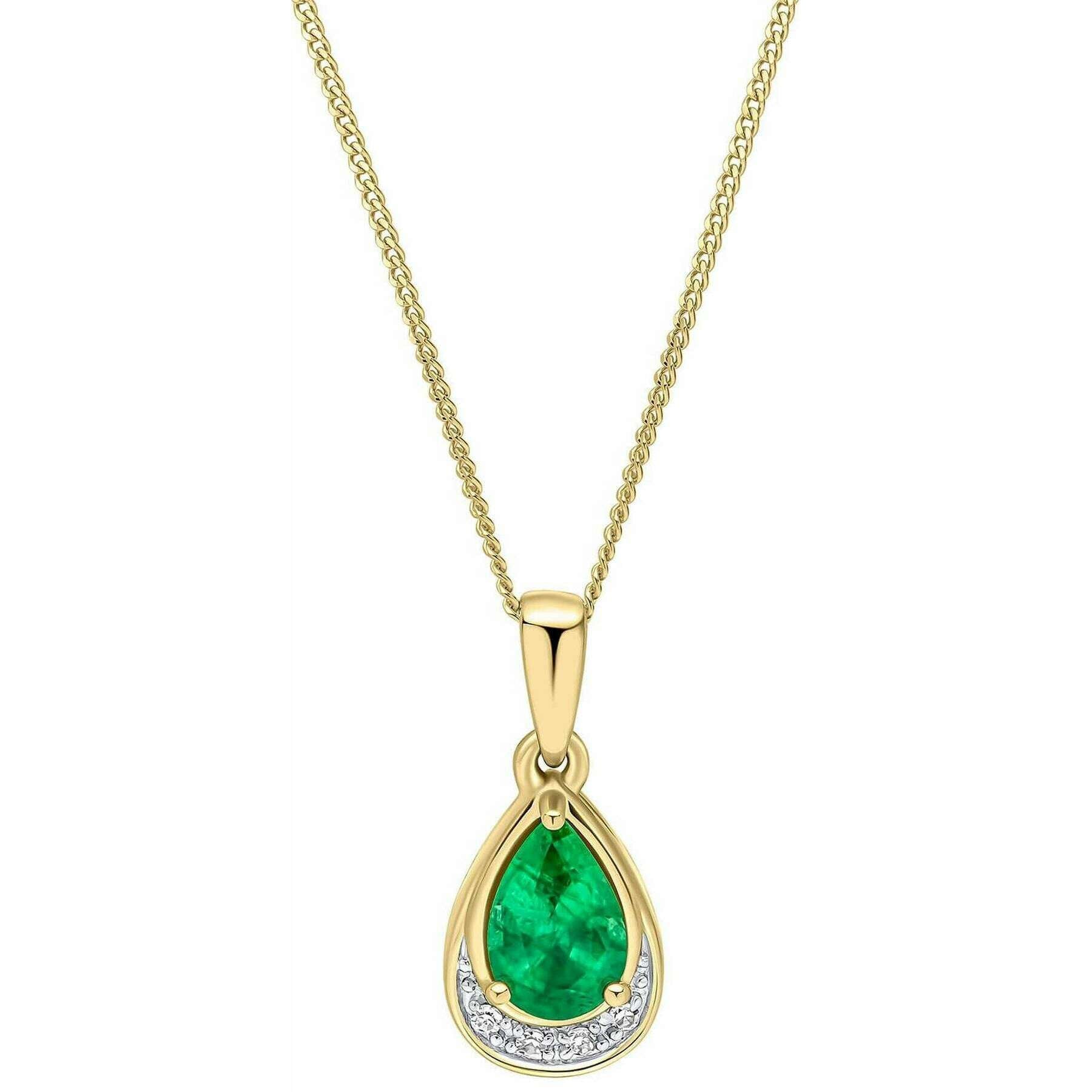 Elements Gold Teardrop Emerald and Diamond 9ct Gold Pendant - Green