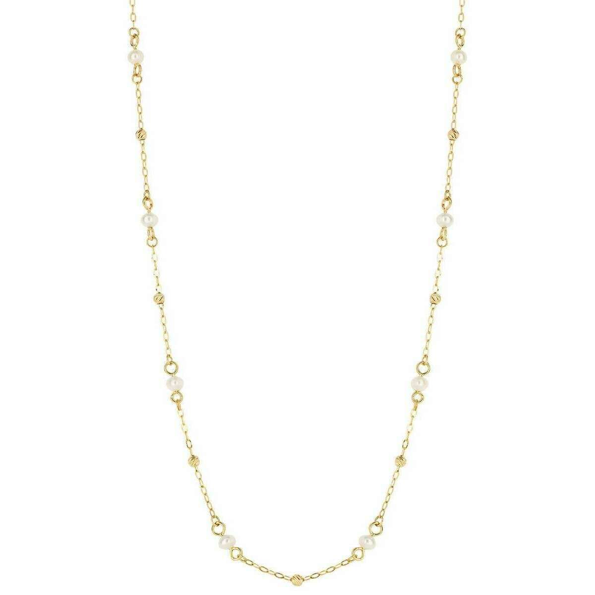 Elements Gold Trace Chain Freshwater Pearl Station Necklace - Gold/White