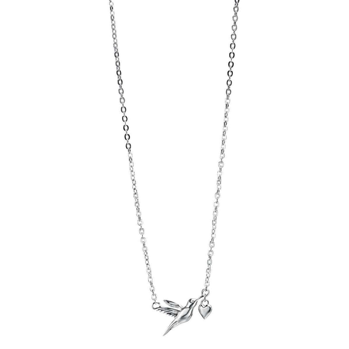 Elements Silver Hummingbird and Heart Necklace - Silver