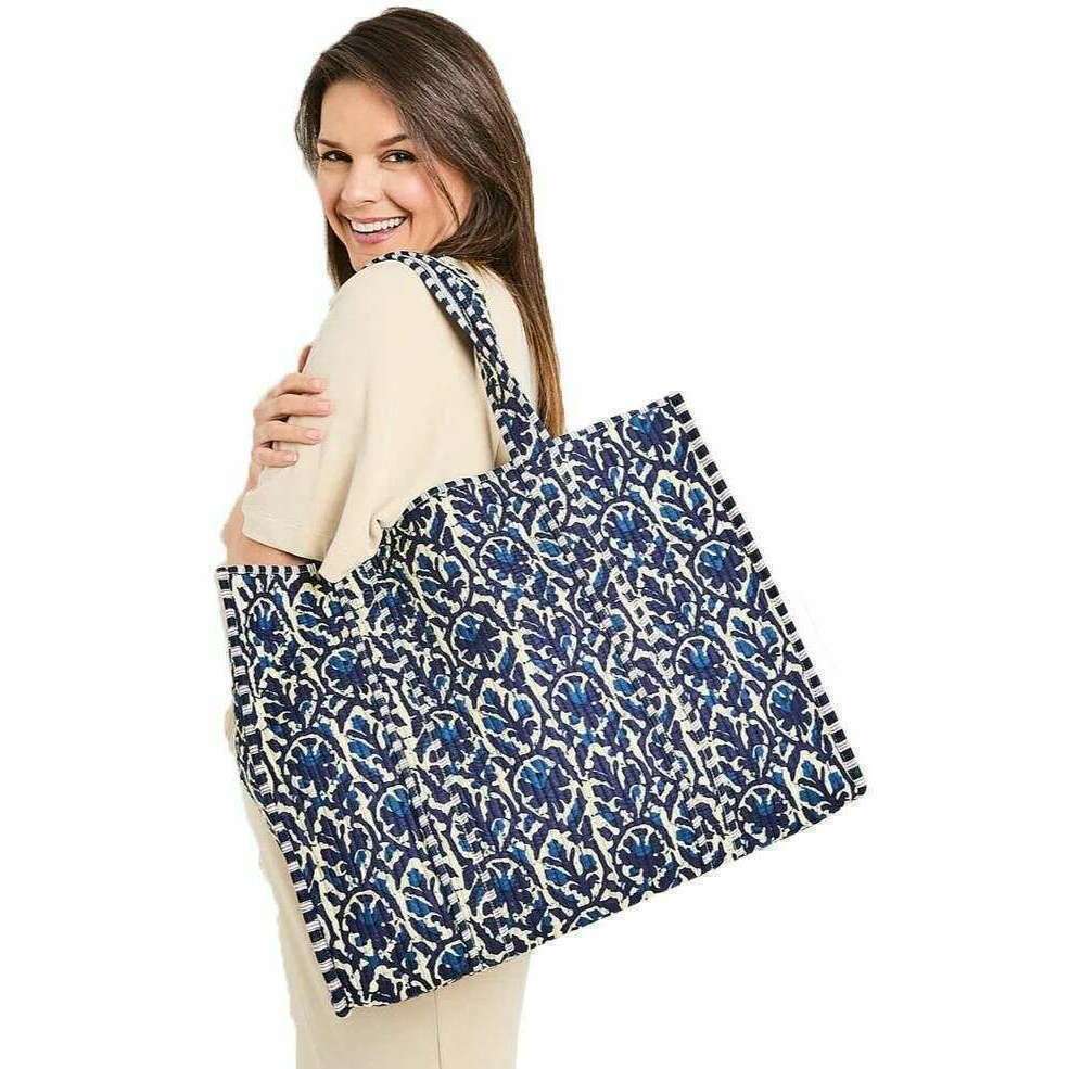Elie Beaumont Serendipity Cotton Quilted Tote Bag - Ikat Indigo