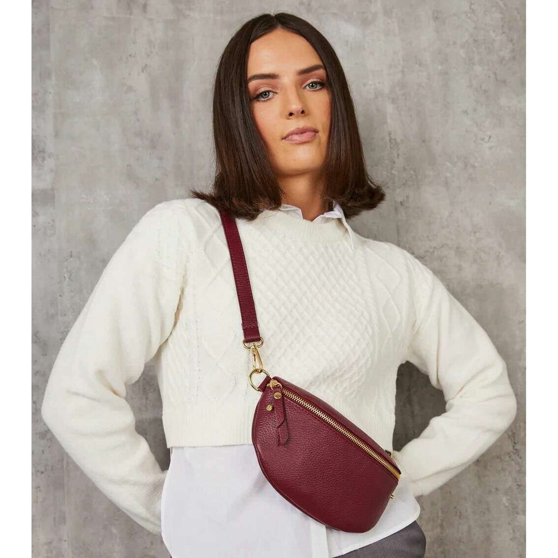 This sling bag for women is fashioned by the brand Elie Beaumont in a burgundy colour and is made from 100% genuine premium leather. It measures 10cm(height) x 25cm(width) x 5.5cm(depth). All the bags come complete with elie beaumont packaging. The Elie Beaumont Sling Bag - Wine perfect for a sophisticated everyday wear with its versatile styling options with the adjustable strap. Featuring internal pockets for storage and organisation and a large main compartment to fit your essentials. Crafted from genuine premium leather gives a sleek and luxurious appeal whilst being durable and long lasting. Complete with gold hardware for sophistication.