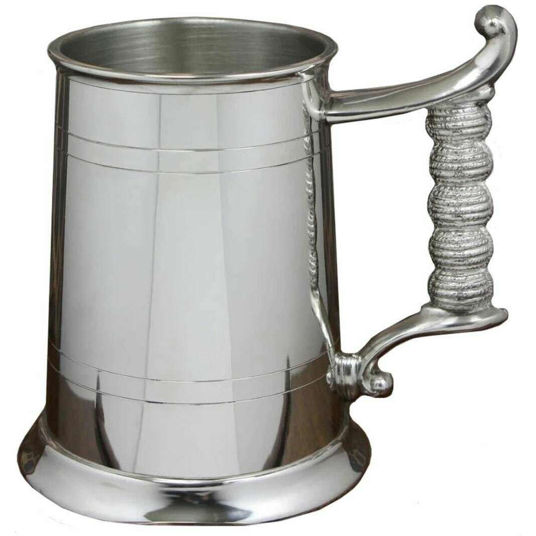 Brought to you by the brand English Pewter Company, this silver unisex 1pt straight rope handle tankard is made from pewter. It measures 12.75cm(height). All the drinkware and glassware comes complete in a english pewter company gift box. The English Pewter Company 1pt Straight Rope Handle Tankard - Silver will make the perfect gift for someone special or to add to your drinkware. It features a sturdy handle with an intricate design and offer classic appeal with its weighty finish. Fill it up with your favourite ale or craft beer and raise a toast for the special occasion. The high quality material ensures it gives off timeless charm.