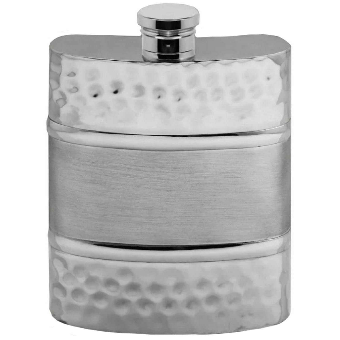 English Pewter Company 6oz Hammered Satin Band Hip Flask - Silver
