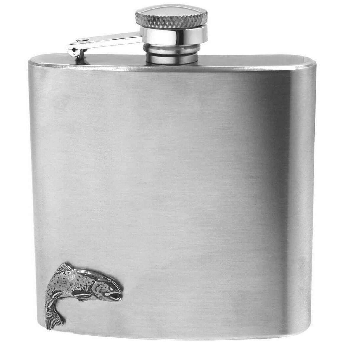 English Pewter Company 6oz Stainless Steel Trout Hip Flask - Silver