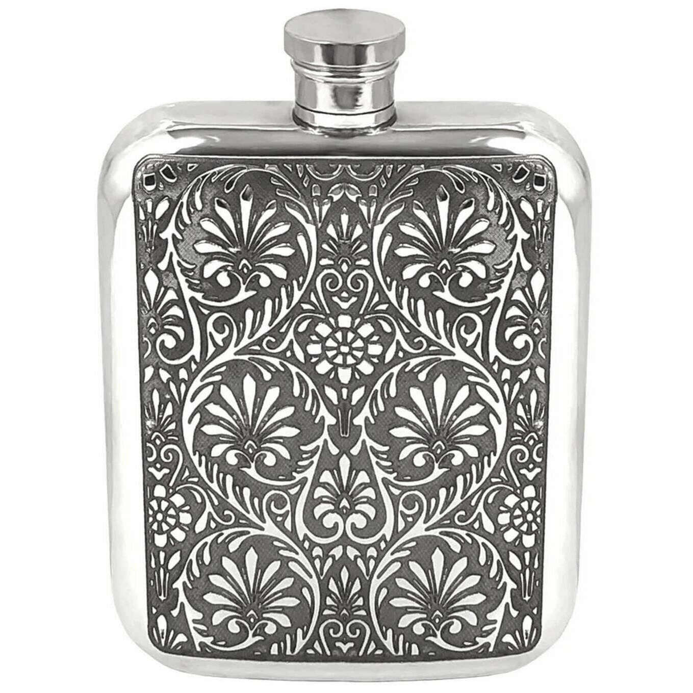 This 6oz victorian purse flask for men or women is fashioned by the brand English Pewter Company in a silver colour and is made from pewter. It measures 13cm(height). All the hip flasks come complete in a english pewter company gift box. The English Pewter Company 6oz Victorian Purse Flask - Silver will make the perfect companion, storing your favourite beverage in timeless style and impeccable quality. The screw-cap ensures that your favourite drink is secure inside with its leak-proof seal but also making sure it is easily accessible. Adorned with a classic design, this hip flask would make the perfect gift.