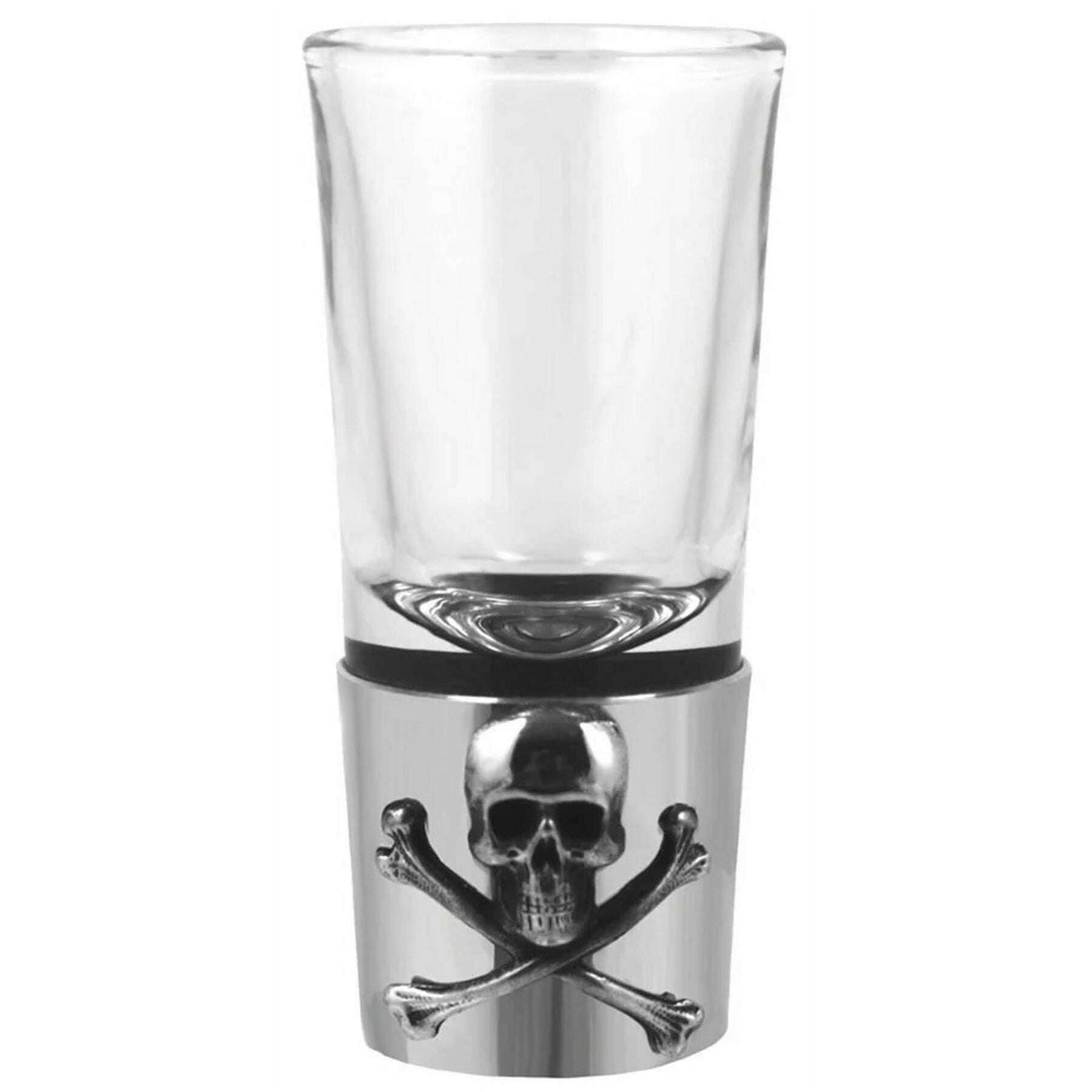 This well made unisex single poison shot glass from English Pewter Company comes in a silver/clear colour and is manufactured from pewter and glass. It measures 8cm(height). It is recommended to wipe clean to keep this drinkware and glassware in good condition. All the drinkware and glassware comes complete with english pewter company gift box. The English Pewter Company Single Poison Shot Glass - Silver/Clear is the perfect piece for shotting your favourite spirits on special occasions. If you are looking to enhance your drinking experience, then look no further. The gorgeous pewter detail of a skull and crossbones elevates the aesthetic and rounds of the glass beautifully.