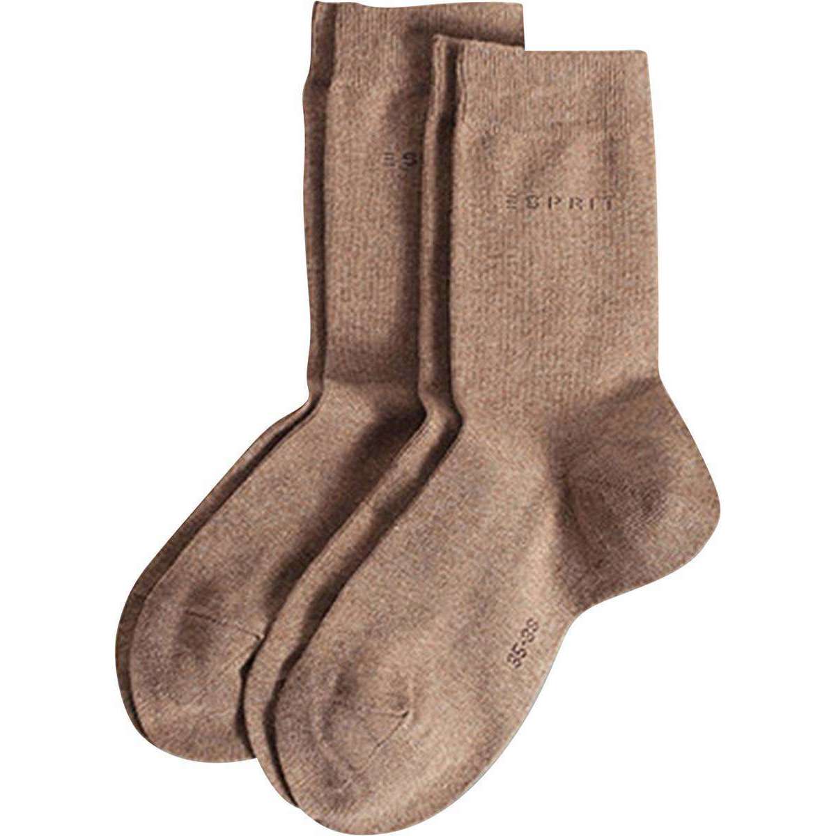 Esprit Basic Fine Knit Mid-Calf 2 Pack Socks - Nutmeg Brown