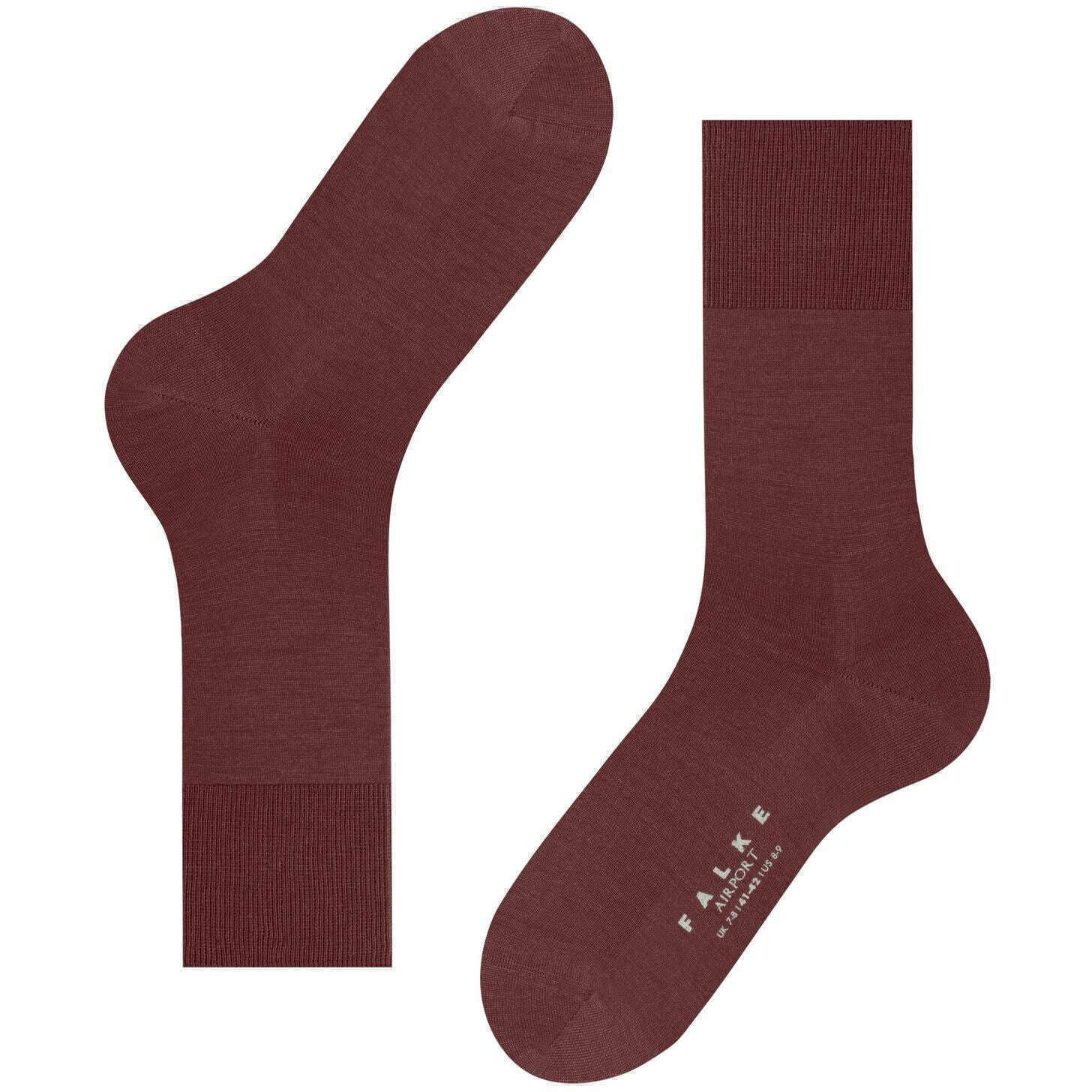 These men's airport socks have been made from 60% virgin wool, 23% cotton, 15% polyamide and 2% elastane, featured in a brown colour and are from the brand Falke. Also the cayenne red socks are designed in a plain pattern, It is recommended to machine wash at 30 degrees celsius to keep these socks in good condition. All the socks come complete with falke sock tags. The Falke Airport Socks - Cayenne Red are woven with the correct combination of light, climate-regulating merino wool on the outside and pleasant soft cotton on the inside. For work or leisure, these socks have extended cuffs for a wrinkle fit on the leg. With flat whipped seam, your toes endure no pinch or pressure. Stay comfortable all day with the Falke Perfect fit and enjoy wearing these socks over and over with optimal durability thanks to reinforced stress zones.
