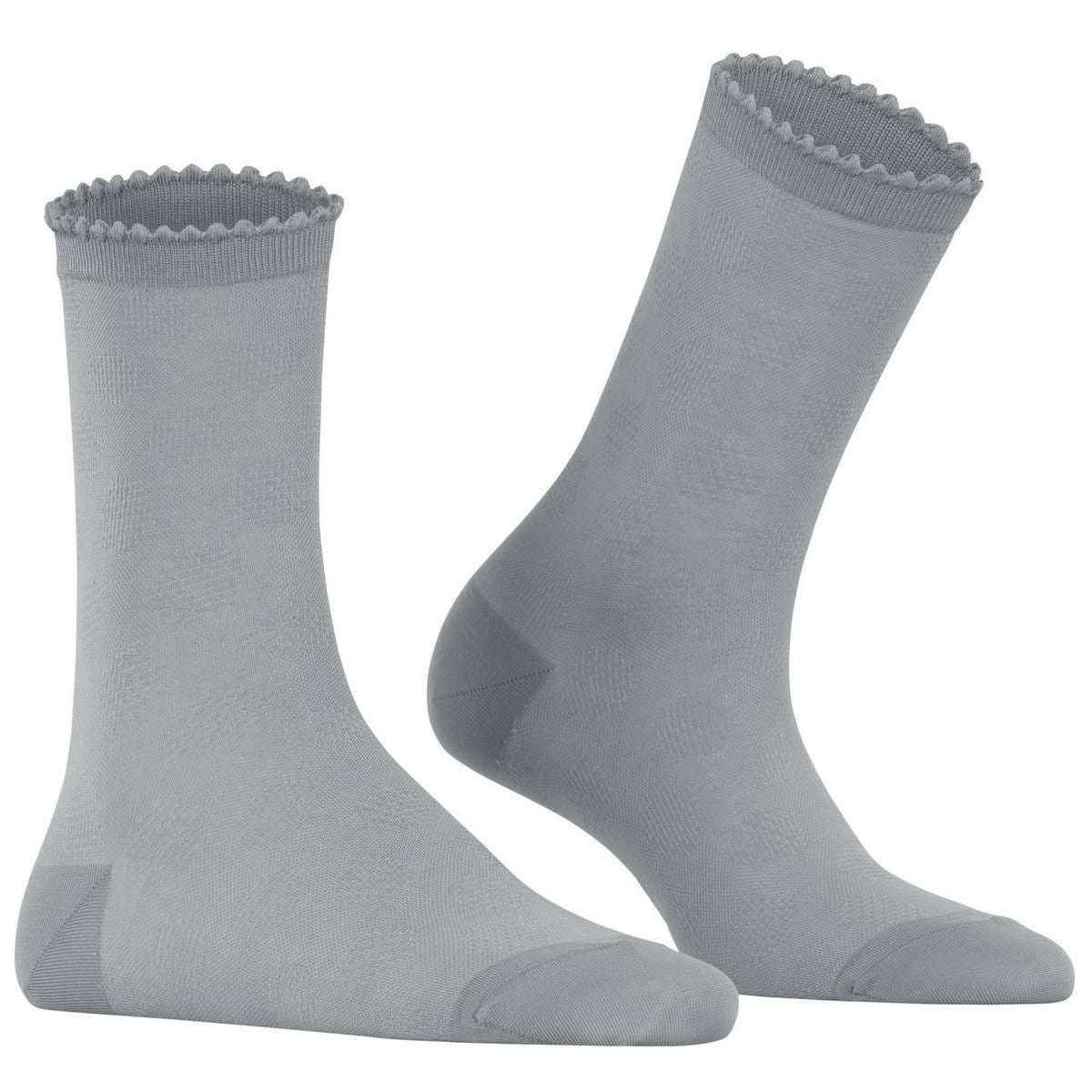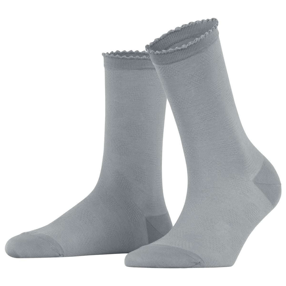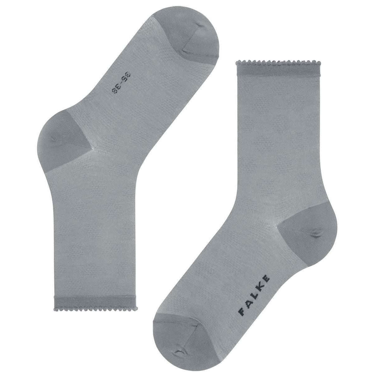 Designer Falke have brought you these women's 68% cotton (organic), 30% polyamide (6% recycled) and 2% elastane socks using silver grey tones. Also the silver grey socks are designed in a polka dot pattern, It is recommended to wash at 40 degrees to keep these socks in good condition. All the socks come complete with falke tags. The Falke Bold Dot Socks - Silver Grey offer a sophisticated slightly ruffled cuff that adds class to any outfit. Made with sustainable Falke We Care organic Cotton these socks offer an ultimate comfortable wear. The timeless tonal dot pattern will add life to any outfit. These socks feature flat toe seam for a pressure-free fit and reinforced stress zones for durability. Combined with the Falke Perfect Fit, these socks are perfect for many occasions!