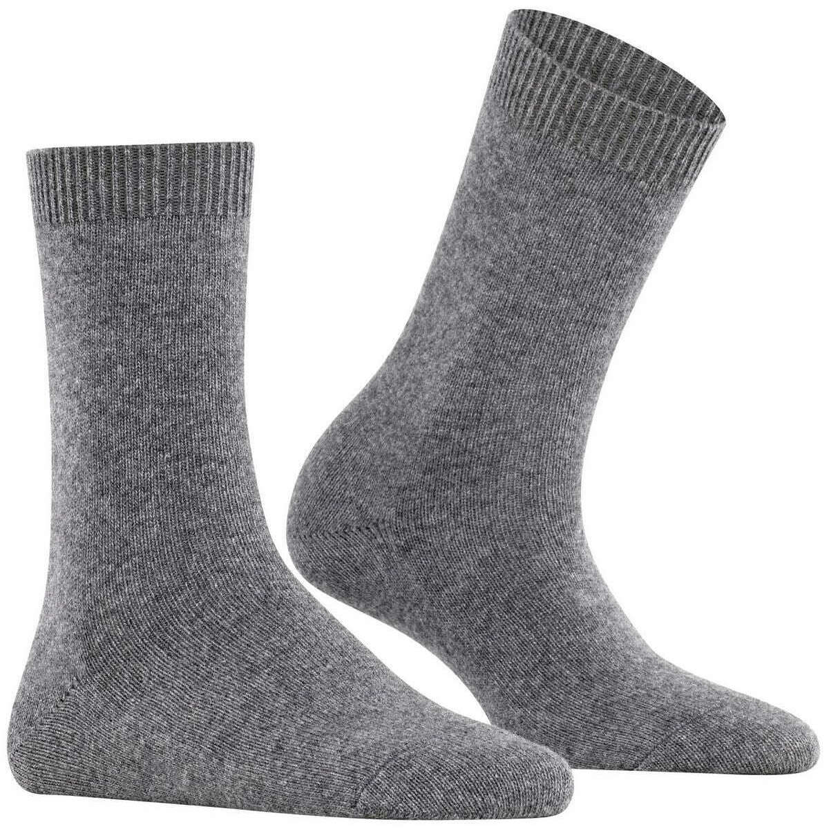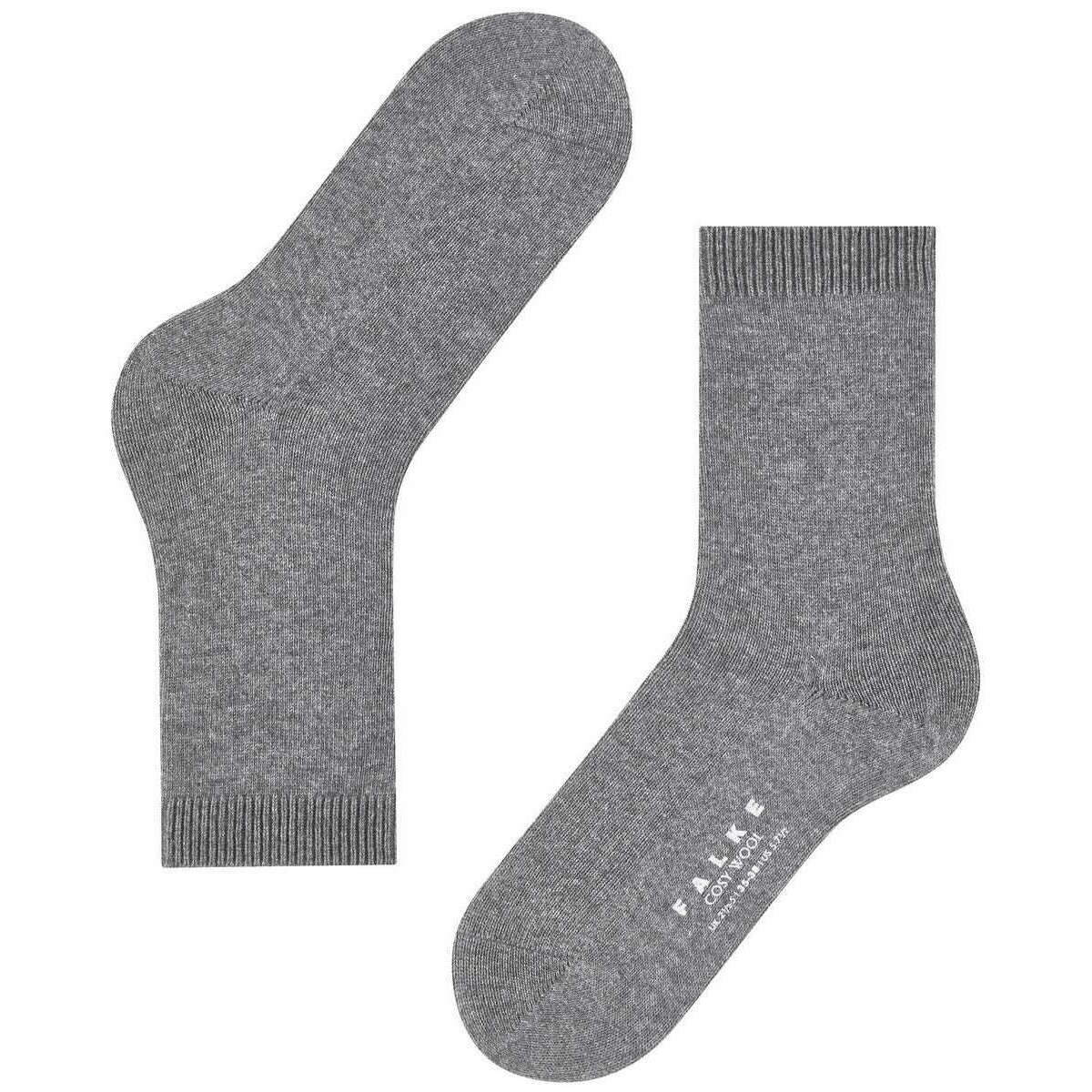 These cosy wool socks for women are fashioned by the brand Falke in a grey colour and are made from 31% wool, 27% viscose, 24% polyamide and 18% cashmere. Also the light grey mel socks are designed in a plain pattern, It is recommended to wash at 30 degrees to keep these socks in good condition. All the socks come complete with falke sock tags. The Falke Cosy Wool Socks - Light Grey Mel are made to pamper your feet! With soft, warming cashmere and light, climate- regulating merino wool, your feet will remain warm and cosy all day long. Thanks to reinforced stress zones and being made from Falke-We-Care-Wool, these socks offer an optimal durability you can count on and are kind to the environment. Perfect for casual outfits with solid boots or ankle boots, these sustainable socks will give you a snug, stay in place Falke Perfect Fit, while the trendy colours complement your fashion style.