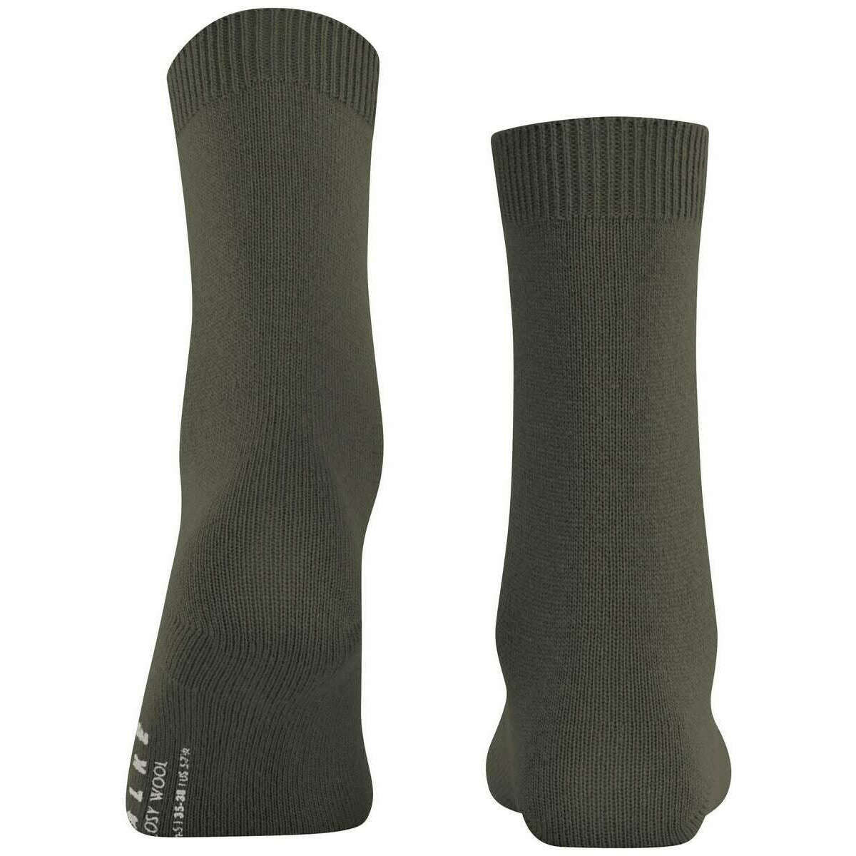 These women's cosy wool socks have been made from 31% wool, 27% viscose, 24% polyamide and 18% cashmere, featured in a green colour and are from the brand Falke. Also the military green socks are designed in a plain pattern, It is recommended to wash at 30 degrees to keep these socks in good condition. All the socks come complete with falke sock tags. The Falke Cosy Wool Socks - Military Green are made to pamper your feet! With soft, warming cashmere and light, climate- regulating merino wool, your feet will remain warm and cosy all day long. Thanks to reinforced stress zones and being made from Falke-We-Care-Wool, these socks offer an optimal durability you can count on and are kind to the environment. Perfect for casual outfits with solid boots or ankle boots, these sustainable socks will give you a snug, stay in place Falke Perfect Fit, while the trendy colours complement your fashion style.