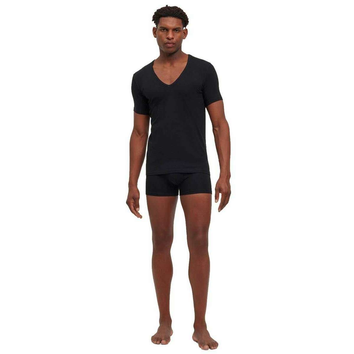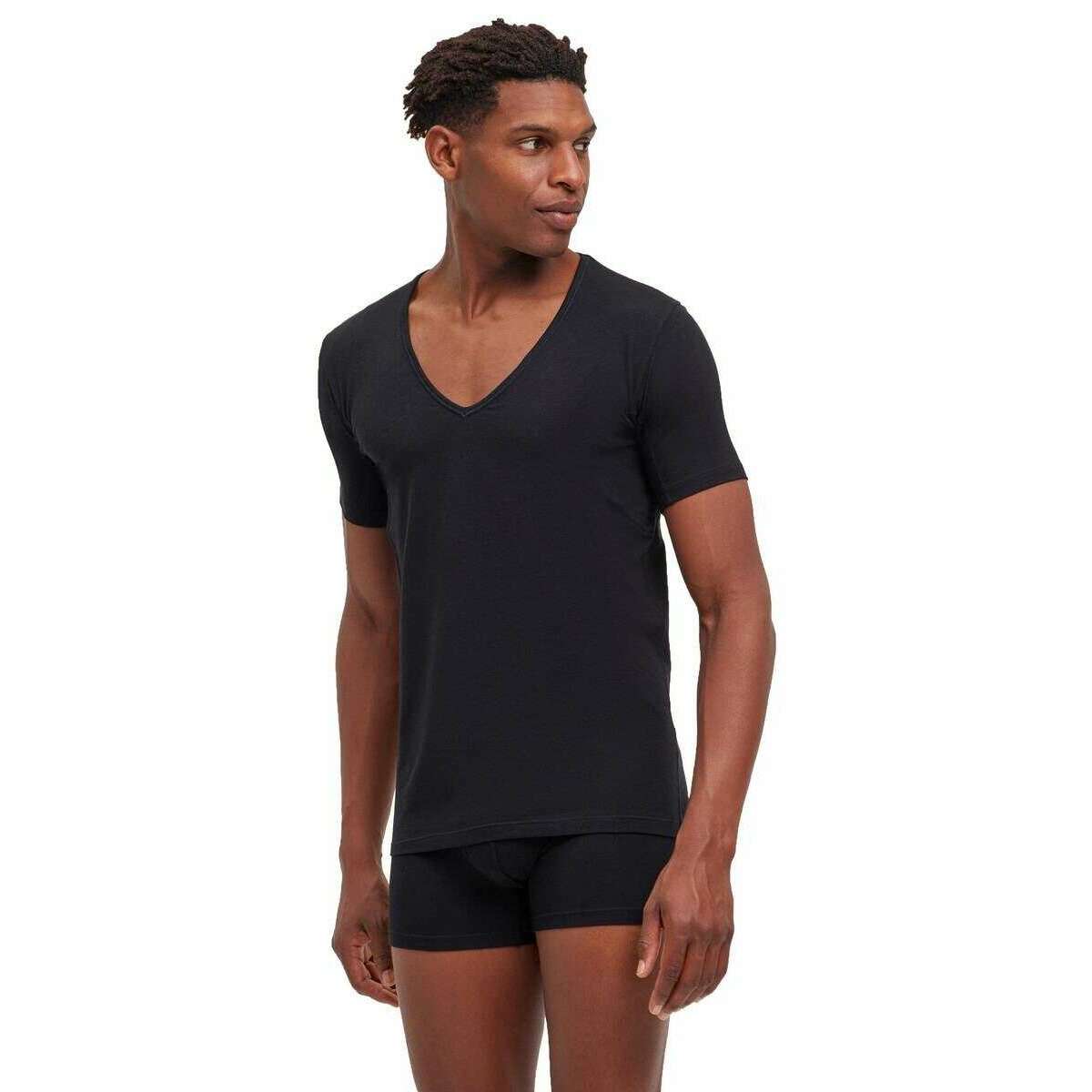 This men's daily climate control deep v-neck t-shirt by the brand Falke is made from 57% cotton, 38% viscose and 5% elastane and is showcased in black. Also the black t-shirt is designed in a plain pattern, It is recommended to wash at 40 degrees to keep this t-shirt in good condition. All the t-shirts come complete with falke packaging. The Falke Daily Climate Control Deep V-Neck T-Shirt - Black is designed for men who prioritize comfort, functionality, and style in their everyday wear. With certified Space technology this deep V-neck undershirt offers a good feeling all around and supports active people. The extended back is a perfect fit without slipping out of your pants while the double fabric inserts in the armpit area, prevents sweating. Ideal for the businessman, this undershirt is a must-have essential for any wardrobe.