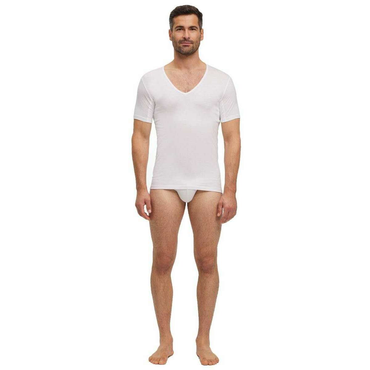This daily climate control deep v-neck t-shirt for men is fashioned by the brand Falke in a white colour and is made from 57% cotton, 38% viscose and 5% elastane. Also the white t-shirt is designed in a plain pattern, It is recommended to wash at 40 degrees to keep this t-shirt in good condition. All the t-shirts come complete with falke packaging. The Falke Daily Climate Control Deep V-Neck T-Shirt - White is designed for men who prioritize comfort, functionality, and style in their everyday wear. With certified Space technology this deep V-neck undershirt offers a good feeling all around and supports active people. The extended back is a perfect fit without slipping out of your pants while the double fabric inserts in the armpit area, prevents sweating. Ideal for the businessman, this undershirt is a must-have essential for any wardrobe.