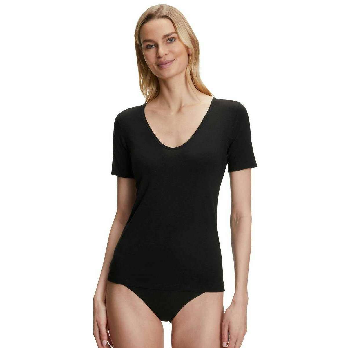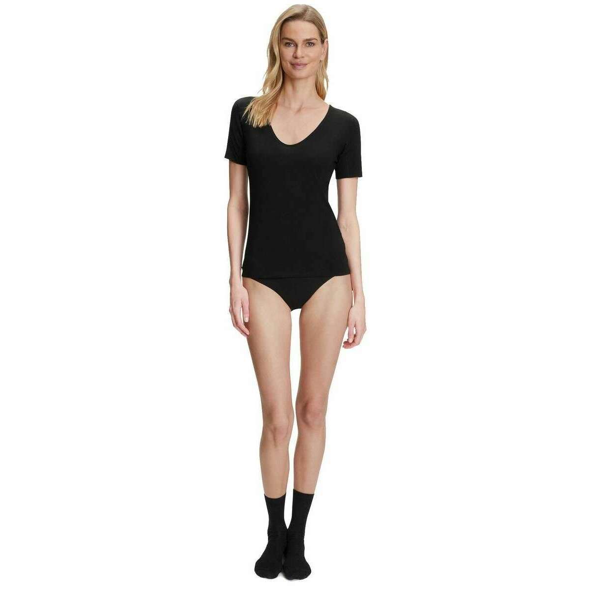 Brought to you by the brand Falke, this black women's daily climate control t-shirt is made from 57% cotton, 38% rayon and 5% elastane. Also the black t-shirt is designed in a plain pattern, It is recommended to wash at 40 degrees, do not tumble dry, iron on a medium temperature, do not dry clean and do not bleach to keep this t-shirt in good condition. All the t-shirts come complete in falke packaging. The Falke Daily Climate Control T-Shirt - Black gives you the opportunity to indulge in the luxurious feel of Egyptian cotton with OUTLAST viscose technology. The soft fabric is gentle on the skin, while the innovative technology stabilizes the body's microclimate, keeping you comfortable all day long. Perfect for everyday wear or layering, this top combines style and functionality effortlessly.