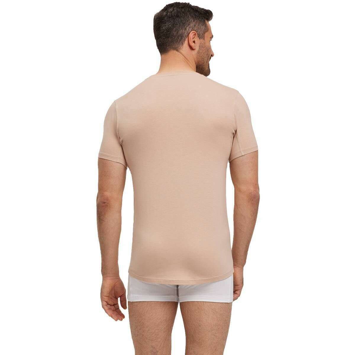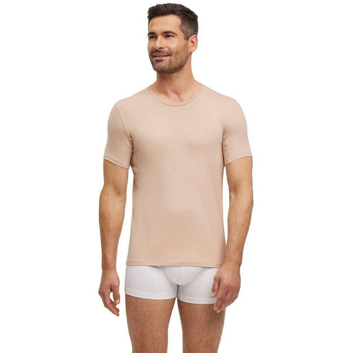 Perfect for men is this Falke camel brown daily climate control t-shirt, it is also made from 57% cotton, 38% viscose and 5% elastane. Also the camel brown t-shirt is designed in a plain pattern, It is recommended to wash at 40 degrees to keep this t-shirt in good condition. All the t-shirts come complete with falke packaging. The Falke Daily Climate Control T-Shirt - Camel Brown is designed for men who prioritize comfort, functionality, and style in their everyday wear. With certified Space technology this crew neck undershirt offers a good feeling all around and supports active people. The extended back is a perfect fit without slipping out of your pants while the double fabric inserts in the armpit area, prevents sweating. Perfect for layering or wearing on its own, this undershirt is a must-have essential for any wardrobe.