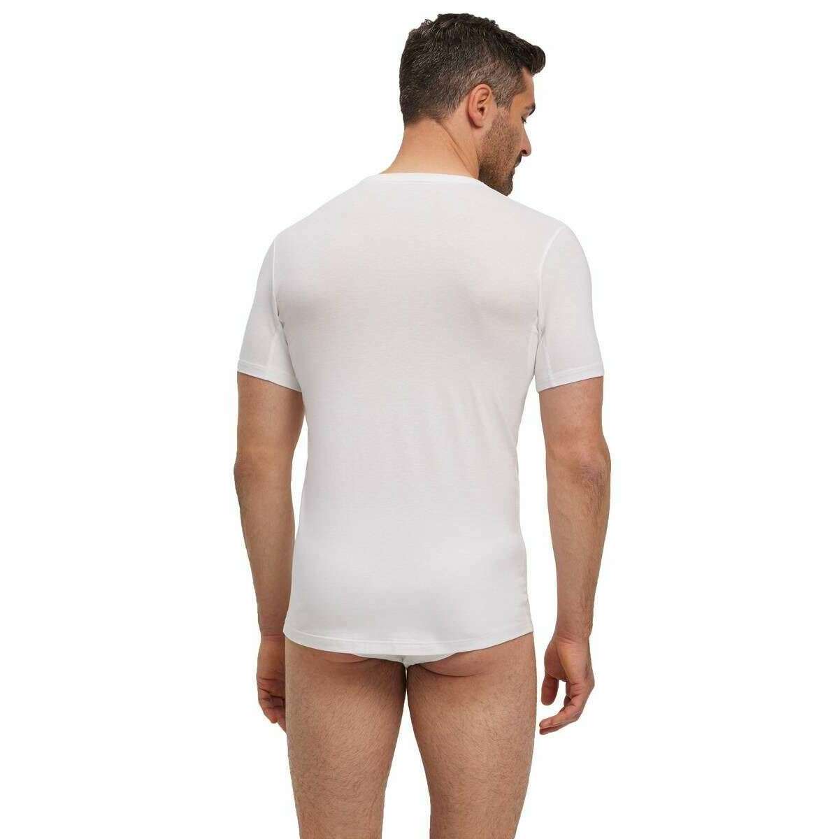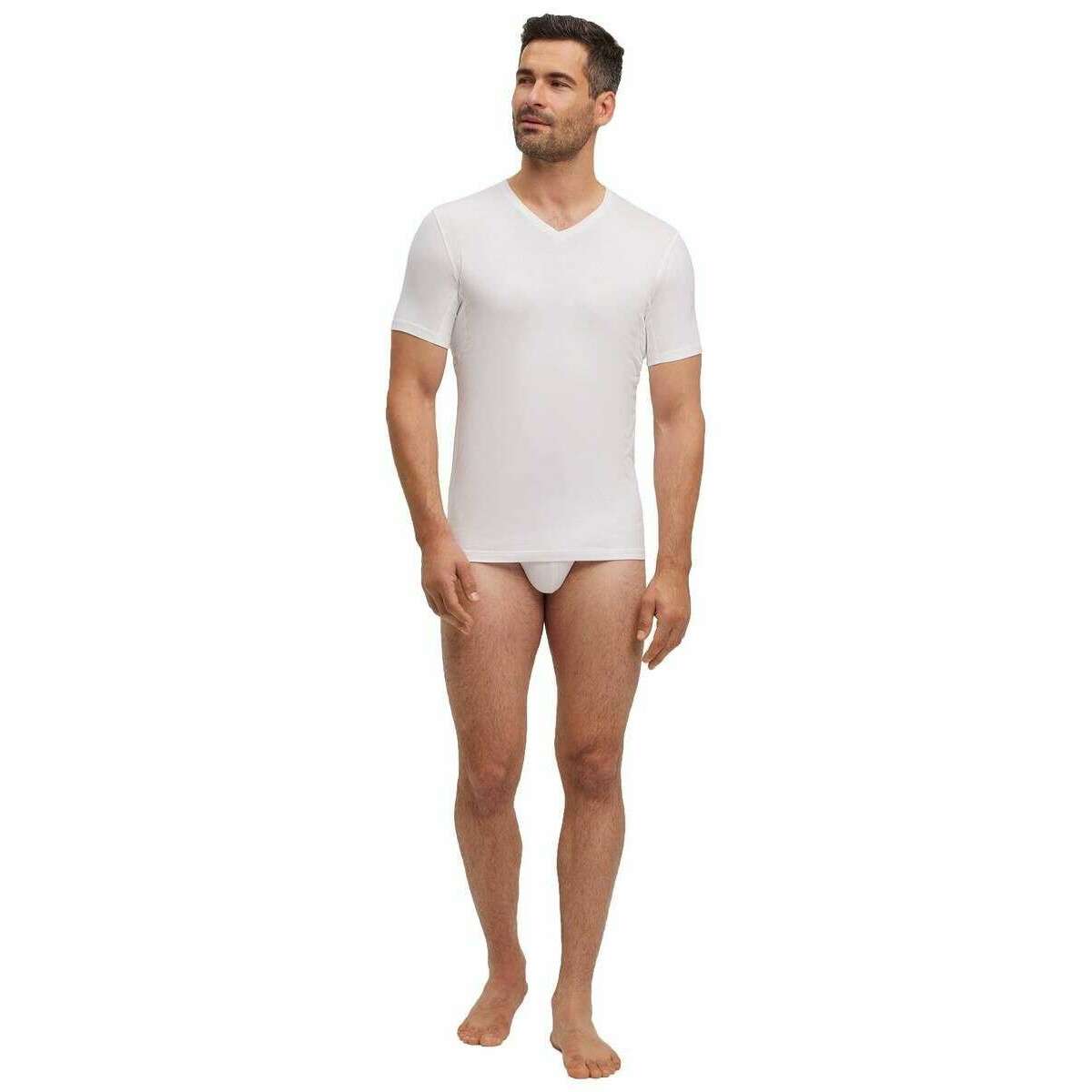 Introducing this men's daily climate control v-neck t-shirt by Falke, it is manufactured from 57% cotton, 38% viscose and 5% elastane in a white colour. Also the white t-shirt is designed in a plain pattern, It is recommended to wash at 40 degrees to keep this t-shirt in good condition. All the t-shirts come complete with falke packaging. The Falke Daily Climate Control V-Neck T-Shirt - White is designed for men who prioritize comfort, functionality, and style in their everyday wear. With certified Space technology this V-neck undershirt offers a good feeling all around and supports active people. The extended back is a perfect fit without slipping out of your pants while the double fabric inserts in the armpit area, prevents sweating. Ideal for the businessman, this undershirt is a must-have essential for any wardrobe.