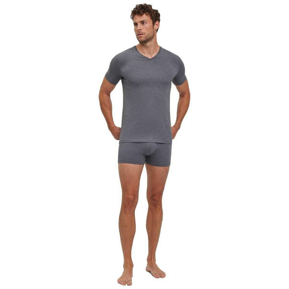 This men's daily comfort 2 pack t-shirt by the brand Falke is made from 96% cotton and 4% elastane and is showcased in grey. Also the dark grey heather t-shirt is designed in a plain pattern, It is recommended to wash at 40 degrees to keep this t-shirt in good condition. 2 pack t-shirts are value for money ensuring they are a good buy, All the t-shirts come complete with falke presentation box. The Falke Daily Comfort 2 Pack T-Shirt - Dark Grey Heather is designed to provide superior comfort and versatile functionality for everyday wear. Made from fine Egyptian cotton this t-shirt has a slight stretch and is close fitting with no annoying and scratchy label on the neck. The sleeve and body hems are finely quilted, while the V-neck is cut deeper for an visible look under shirts.