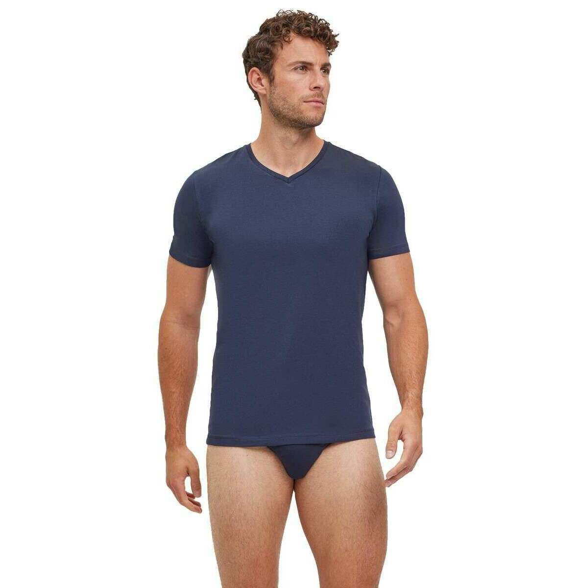 This well made men's daily comfort 2 pack t-shirt from Falke comes in a midnight navy colour and is manufactured from 96% cotton and 4% elastane. Also the midnight navy t-shirt is designed in a plain pattern, It is recommended to wash at 40 degrees to keep this t-shirt in good condition. 2 pack t-shirts are value for money ensuring they are a good buy, All the t-shirts come complete with falke presentation box. The Falke Daily Comfort 2 Pack T-Shirt - Midnight Navy is designed to provide superior comfort and versatile functionality for everyday wear. Made from fine Egyptian cotton this t-shirt has a slight stretch and is close fitting with no annoying and scratchy label on the neck. The sleeve and body hems are finely quilted, while the V-neck is cut deeper for an visible look under shirts.