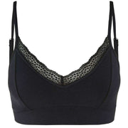 This women's daily lace bra has been made from 46% cotton, 46% modal and 8 % elastane, featured in a black colour and is from the brand Falke. Also the black underwear is designed in a plain pattern, It is recommended to machine wash at 40 degrees, tumble dry on low heat, do not dry clean and do not bleach to keep this underwear in good condition. All the underwear comes complete in falke packaging. The Falke Daily Lace Bra - Black gives you a stunning natural feel, ideal for everyday wear. The cotton-modal blend creates superior softness and is lightweight and breathable. The adjustable straps are nickel free and the V is embellished with elegant lace for a feminine look. Gentle padding is featured but can be removed giving you support and security. This beautiful bralette is gracefully suited to smaller cup sizes.