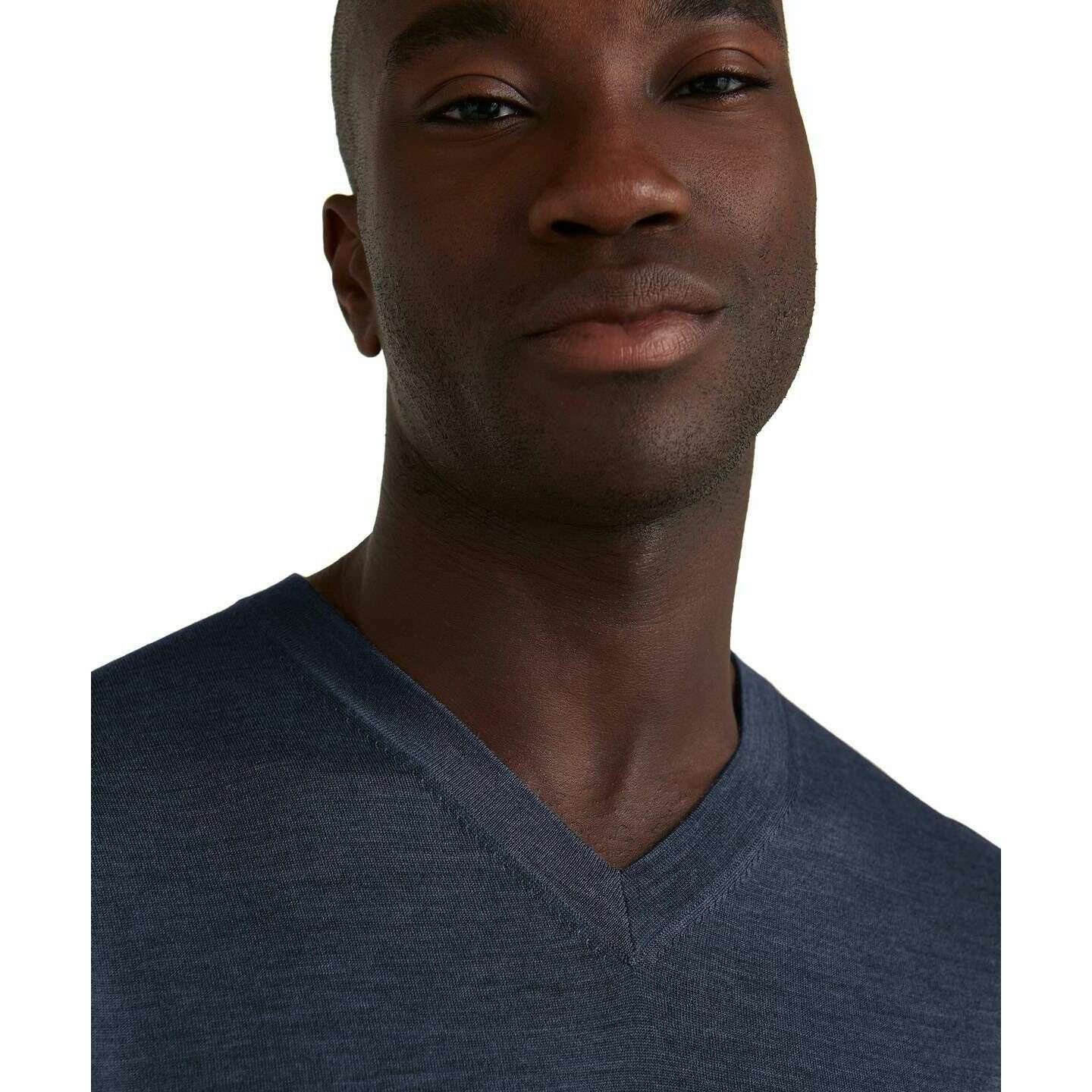 Brought to you by the brand Falke, this space blue men's merino ultra-fine v-neck sweater is made from 98% virgin wool and 2% elastane. Also the space blue jumper is designed in a plain pattern, It is recommended to machine wash at 30 degrees to keep this jumper in good condition. All the jumpers come complete with falke packaging. The Falke Merino Ultra-Fine V-Neck Sweater - Space Blue is a must-have piece to elevate your winter wardrobe with the classic design to give that traditional touch. Crafted from mulesing-free merino wool gives a light wear perfect for mild to cold outdoor temperatures keeping you warm in the autumn and winter. Giving this sweater its fashionable look is the French shoulder seams, fine ribbed neckline and elasticated ribbed cuffs on the trunk and sleeves. The high-quality 'fully fashioned' processing gives an exclusive feel that will be enjoyed and will stay this way for many years to come.
