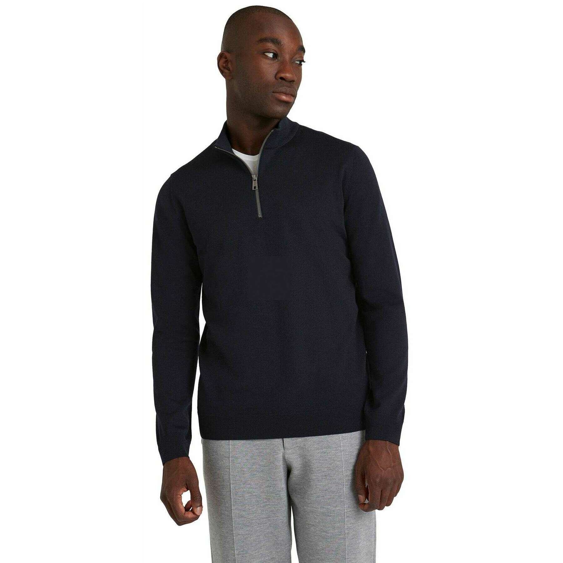 Introducing this men's merino x-fine half zip sweater by Falke, it is manufactured from 100% virgin wool in a night sky navy colour. Also the night sky navy jumper is designed in a plain pattern, It is recommended to machine wash at 30 degrees to keep this jumper in good condition. All the jumpers come complete with falke packaging. The Falke Merino X-Fine Half Zip Sweater - Night Sky Navy is a must-have piece to elevate your winter wardrobe with the classic design to give that traditional touch. Crafted from mulesing-free merino wool gives a light wear perfect for mild to cold outdoor temperatures keeping you warm in the autumn and winter. Giving this sweater its fashionable look is the French shoulder seams, stand up collar and elasticated ribbed cuffs on the trunk and sleeves. The high-quality 'fully fashioned' processing gives an exclusive feel that will be enjoyed and will stay this way for many years to come.
