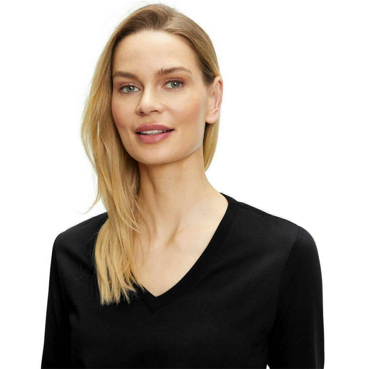 Using black 100% cotton, this pima jersey v-neck long sleeve shirt by Falke is perfect for women and a must have. Also the black t-shirt is designed in a plain pattern, It is recommended to machine wash at 30 degrees to keep this t-shirt in good condition. All the t-shirts come complete with falke packaging. The Falke Pima Jersey V-Neck Long Sleeve Shirt - Black is a staple needed in everyone s collection who prioritises comfort, high-quality and environmentally friendly products. Expertly crafted from single jersey material with pure Peruvian Pima cotton ensures this top is completely skin-friendly, soft on the skin and lightweight, perfect for everyday wearing. The classic v-neck design offers a timeless and original look that will be enjoyed for years to come with the help of the long-lasting colour.