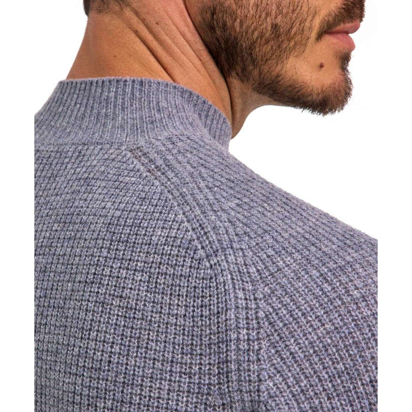 • Mock Collar , Purl Knit , Environmentally Conscious , Regular Fit , Saddle Shoulders , Ribbed Cuffs and Hem , Bead Catch Texture , High-Quality 'Fully Fashioned' Processing