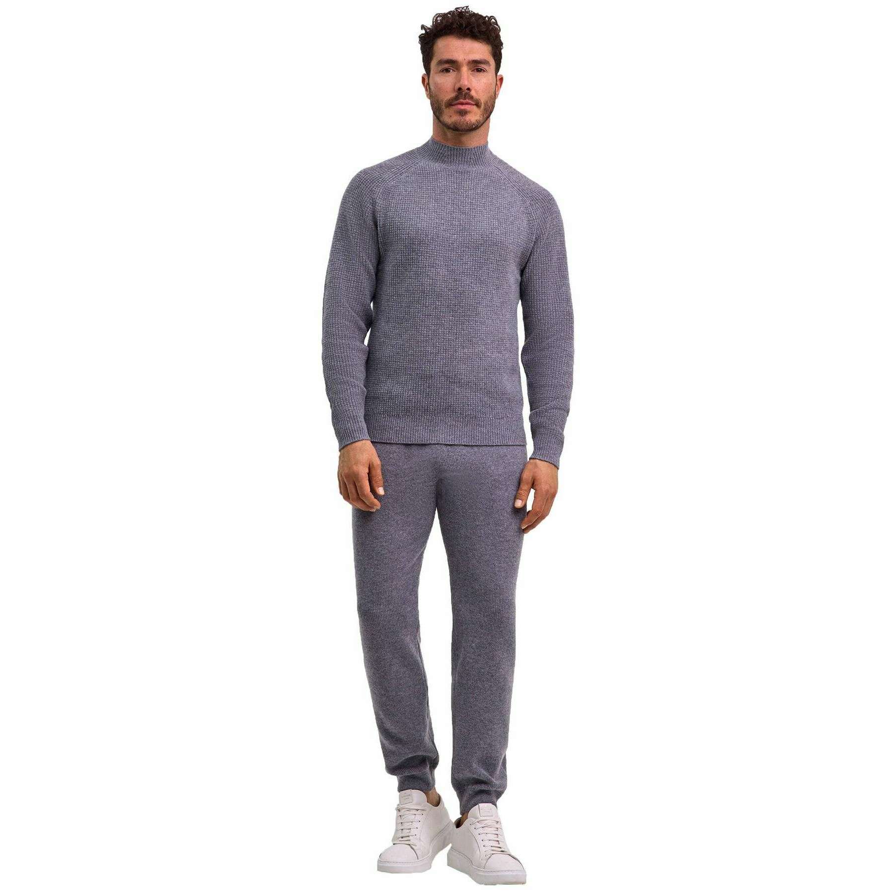 Brought to you by the brand Falke, this grey mel men's ribbed lambswool mock neck sweater is made from 80% virgin wool and 20% recycled polyamide. Also the grey mel jumper is designed in a plain pattern, It is recommended to machine wash at 30 degrees to keep this jumper in good condition. All the jumpers come complete with falke packaging. The Falke Ribbed Lambswool Mock Neck Sweater - Grey Mel will elevate your winter wardrobe becoming a timeless essential. Its classic design adds a traditional touch, while the luxurious lambswool construction offers a soft and snug feel, perfect for braving chilly autumn and winter days. Stylish saddle shoulders, a mock collar and ribbed cuffs and hems create a refined silhouette, while the premium environmentally conscious fully fashioned craftsmanship ensures lasting quality and comfort for years to come.