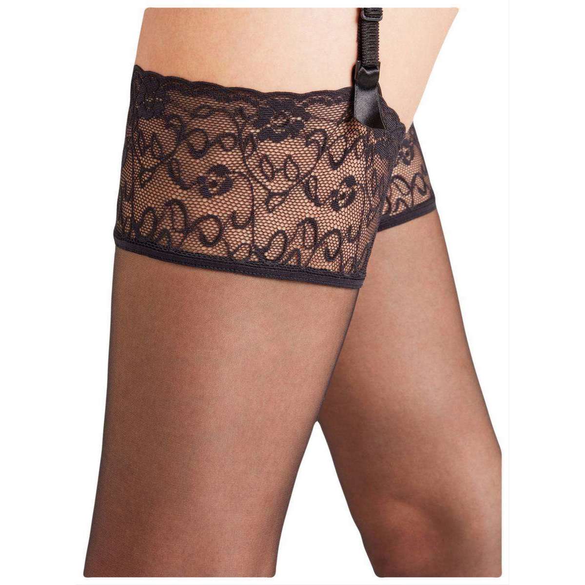 Manufactured from 86% polyamide and 14% elastane are these black women's seidenglatt 15 den hold up transparent stockings by the designer Falke. Also the black stockings are designed in a plain pattern, It is recommended to machine wash at 30 degrees and do not tumble dry to keep these stockings in good condition. All the stockings come complete in falke packaging. The Falke Seidenglatt 15 Den Hold Up Transparent Stockings - Black have been manufactured with a feminine decorative lace that will look gorgeous on any woman. Produced with a slightly reinforced non-laddering toe, they will be certain to impress with their ultimate comfort. These stockings are perfect for any stylish woman to own as they will feel silky smooth on the skin whilst wearing.