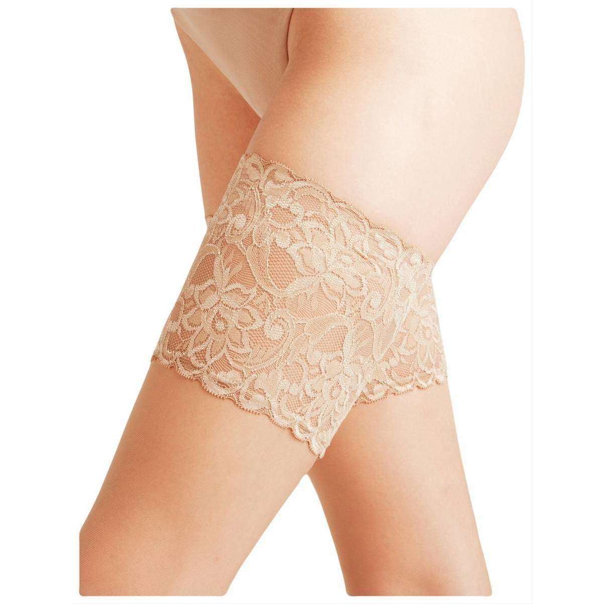 Falke Seidenglatt 15 Den Stay Up Transparent Floral Stockings - Powder Beige