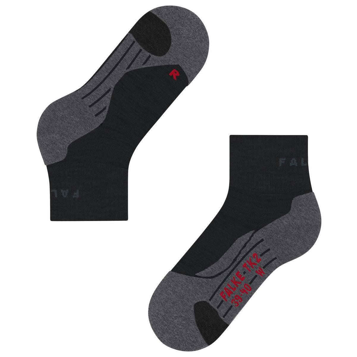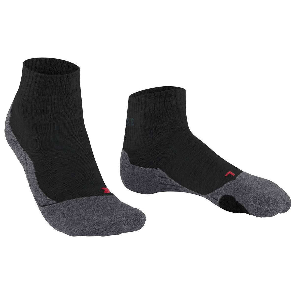 Introducing these men's tk2 explore short socks by Falke, they are manufactured from 49% polypropylene, 20% acrylic, 16% wool, 14% polyamide and 1% elastane in a black mix colour. Also the black mix socks are designed in a block pattern, It is recommended to wash at 30 degrees to keep these socks in good condition. All the socks come complete with falke sock tags. The Falke TK2 Explore Short Socks - Black Mix offer medium cushioning for your wearing comfort. These hiking short socks have a rapid moisture wicking 3-layer construction and thermal insulation to keep your feet dry and blister free. Thermoregulating Merino wool mix with odour resistant qualities that allow you to wear for longer fun in the outdoors. With stress zone protection and cooling proprieties, you get all-day comfort. Complete with optimal fit with toe and sole area adapted to each foot.