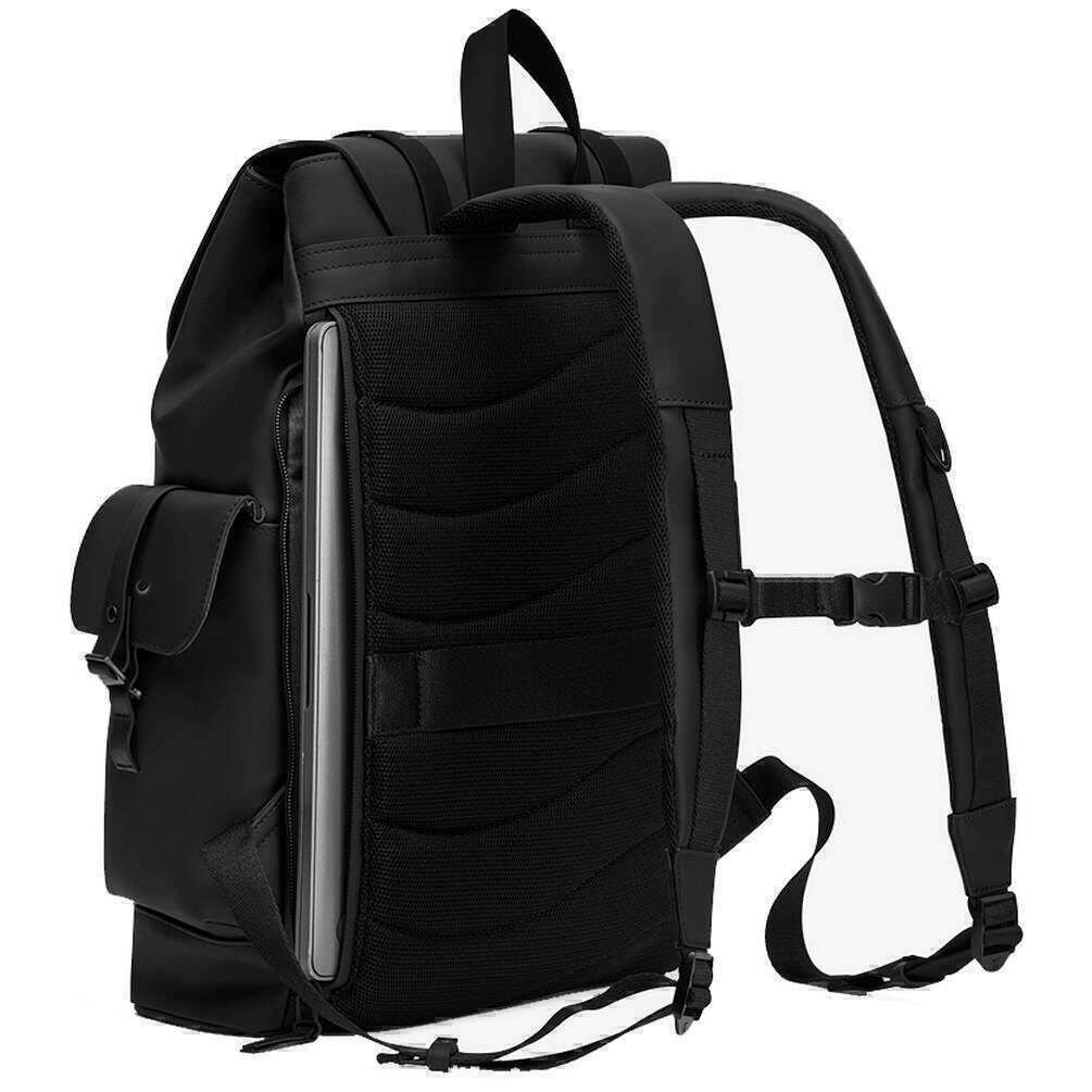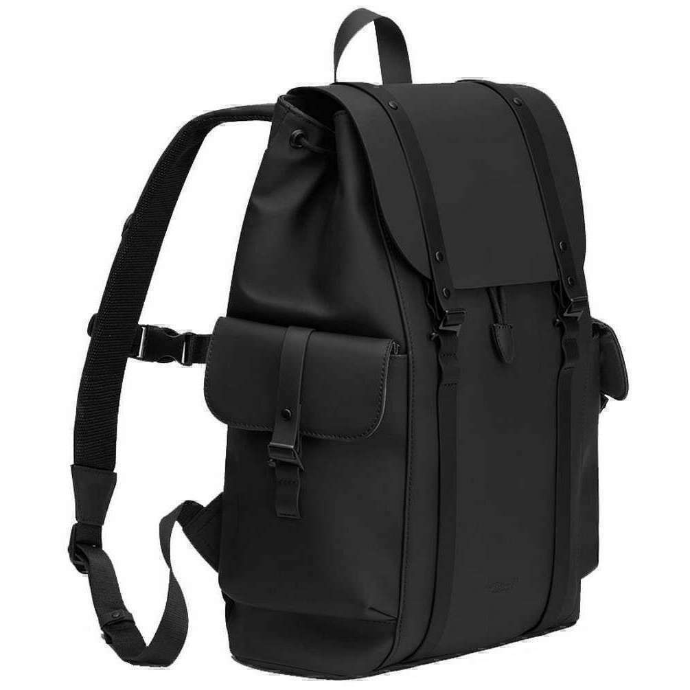 Introducing this unisex splash 16" utility backpack by Gaston Luga, it is manufactured from 100% recycled polyester in a black colour. It measures 36cm(height) x 35cm(width) x 13.5cm(depth). It is recommended to use a simple damp cloth to keep this bag in good condition. All the bags come complete with gaston luga tags. The Gaston Luga Splash 16" Utility Backpack - Black is a versatile and eco-conscious backpack designed for modern urban living. Designed to hold most 11"-16" laptops, this bag is equipped with cushioned and breathable back support for enhanced comfort during extended use. To facilitate easy organization of essentials this bag features two outer pockets and one inner zippered pocket. This Splash utility backpack stands out as a premium choice for those seeking a blend of sustainability, functionality, and modern design.