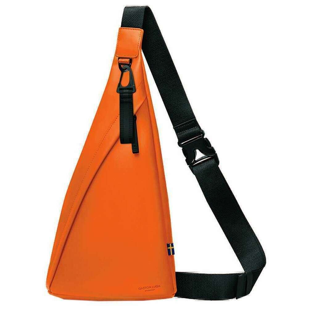 Introducing this unisex splash sling bag by Gaston Luga, it is manufactured from 100% recycled polyester in a orange flame colour. It measures 36cm(height) x 23.5cm(width) x 9.5cm(depth). It is recommended to use a simple damp cloth to keep this bag in good condition. All the bags come complete with gaston luga tags. The Gaston Luga Splash Sling Bag - Orange Flame is a compact and stylish accessory designed for individuals seeking a minimalist yet functional carry solution. Crafted with sustainability and practicality in mind, this sling bag is ideal for daily errands, travel, or casual outings. With an inner mesh pocket for organization and an adjustable shoulder strap for maximum comfort, this sling bag offers effortless wearability, allowing you to carry it with ease wherever your adventures take you.
