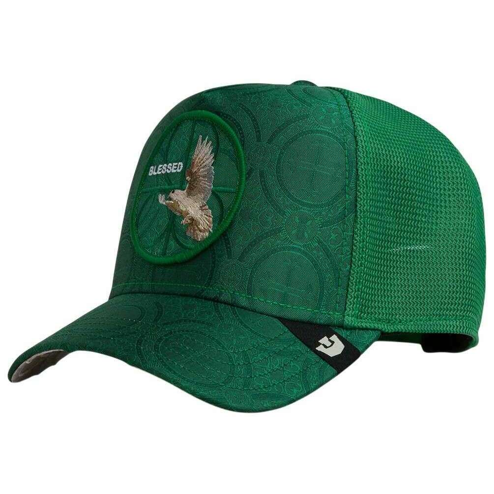 Using green 100% polyester, this religulous blessed trucker hat by Goorin Bros is perfect for men or women and a must have. All the hats come complete with goorin bros tags. The Goorin Bros Religulous Blessed Trucker Hat - Envy Green blends spiritual symbolism with a powerful design. This standout Goorin Bros piece instantly elevates any look with its artistic texture and thoughtful embroidery. The finely detailed bird patch forms a striking focal point, while the richly patterned front panel adds depth, elegance, and unmistakable character. A breathable mesh back ensures lasting comfort, and the adjustable snapback closure provides a perfect fit for everyday wear. With its fusion of spiritual flair, expressive craftsmanship, and high?quality materials, this cap is ideal for anyone who wants to wear their style with purpose and confidence. A meaningful statement piece that brings presence and positivity to your daily life.