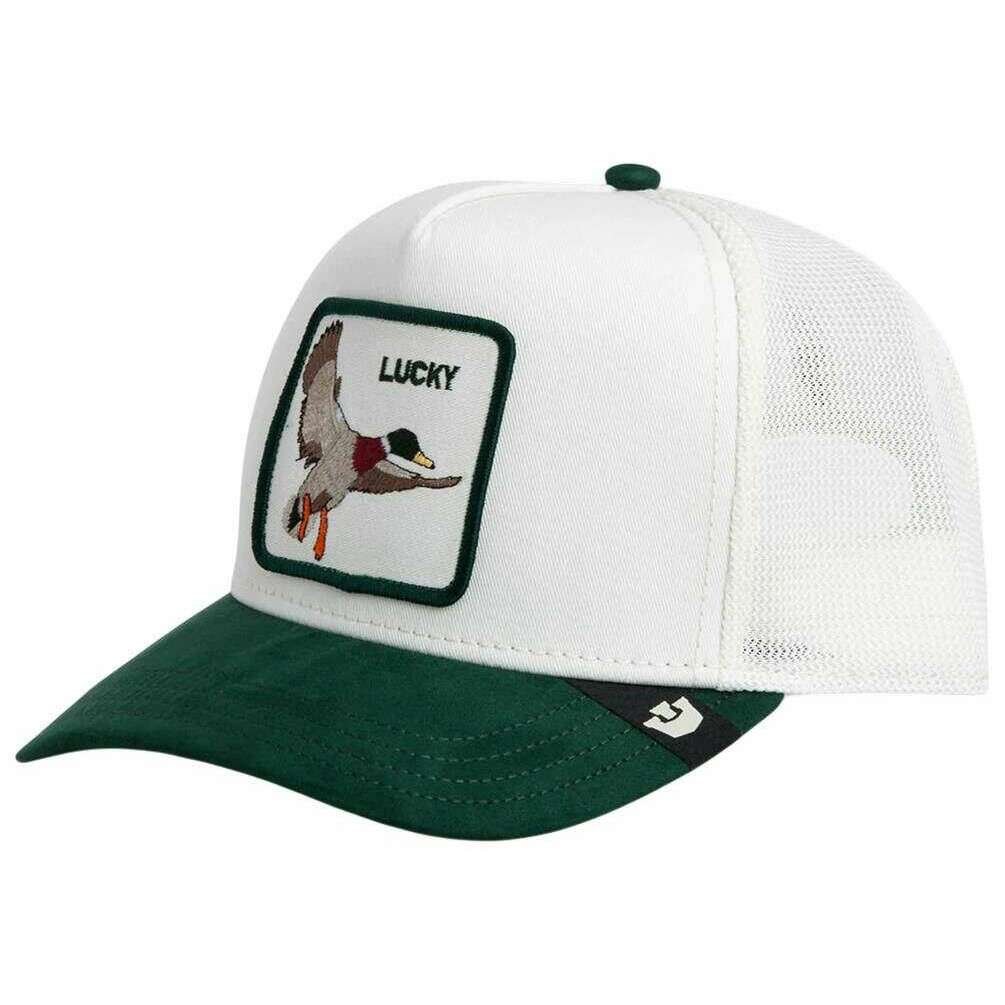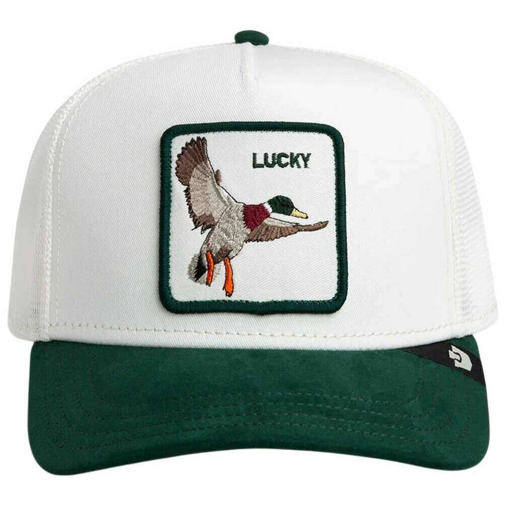 Designer Goorin Bros has brought you this unisex 78% polyester and 22% cotton hat using dust white/guard green tones. All the hats come complete with goorin bros tags. The Goorin Bros Suede Duck Trucker Hat - Dust White/Guard Green brings nature?inspired style to any modern look. This standout Goorin Bros design pairs a crisp white front panel with a deep green suede visor, creating a striking and premium contrast that immediately elevates the cap s appearance. The intricately embroidered duck patch adds vibrant character and gives the cap its authentic, outdoorsy appeal. A breathable mesh back ensures excellent ventilation, while the adjustable snapback closure guarantees a perfect, personalised fit for everyday comfort. With its refined suede details, iconic animal patch, and classic colour combination, this cap is ideal for anyone who wants to express their style in a way that feels natural, fresh, and confidently unique. A must?have accessory for lovers of quality craftsmanship and subtle outdoor flair.