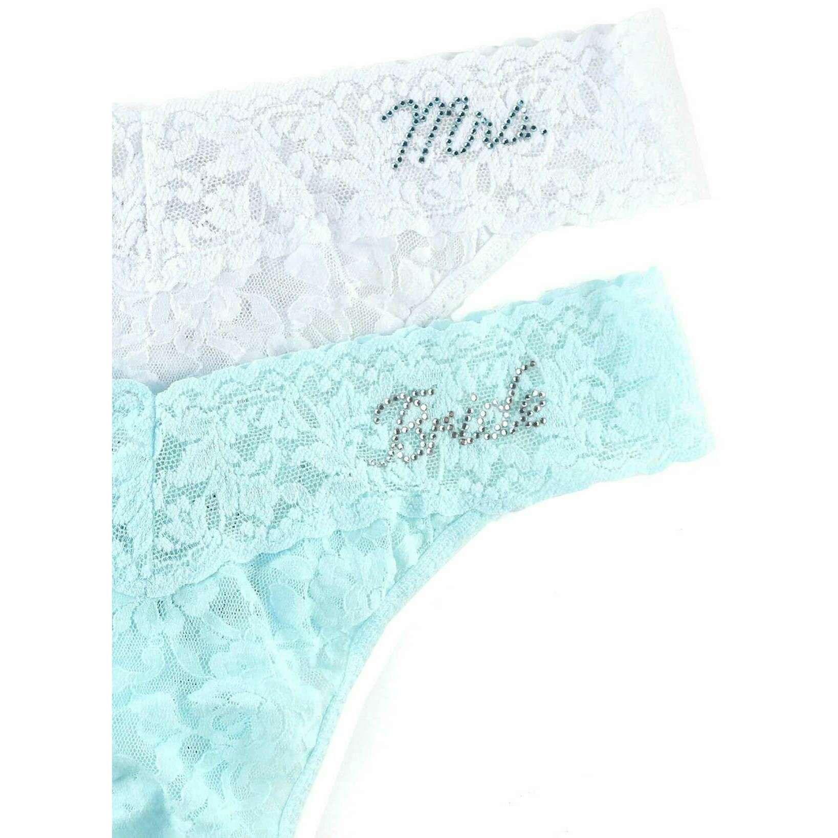 Hanky Panky Bride and Mrs 2-Pack Original Rise Thong - Celeste Blue/White