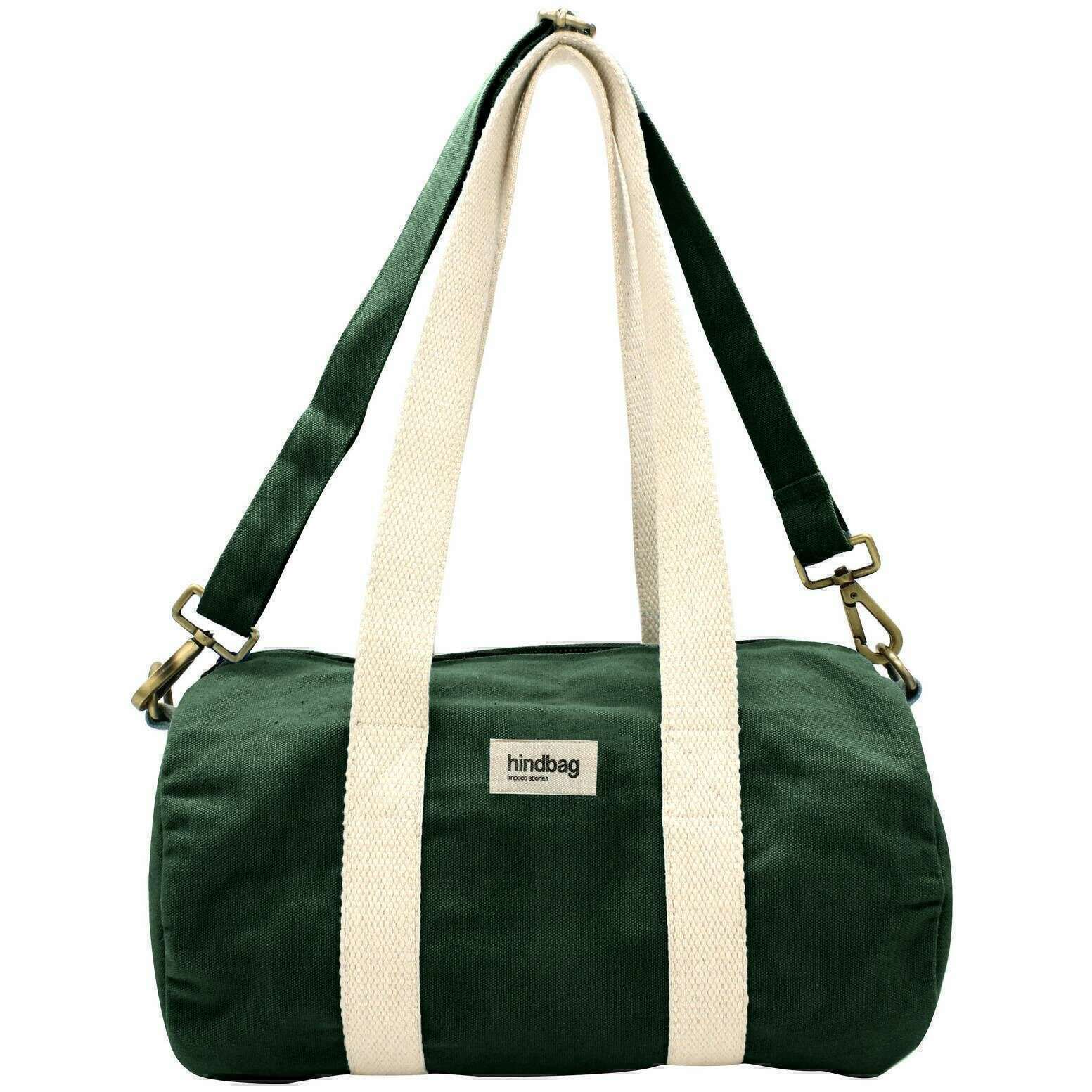 This well made unisex mini simon small duffle bag from Hindbag comes in a forest green colour and is manufactured from 100% organic cotton. It measures 18cm(height) x 35cm(width) x 18cm(depth). All the bags come complete with hindbag packaging. The Hindbag Mini Simon Small Duffle Bag - Forest Green is a versatile and eco-conscious travel companion designed for those seeking functionality without compromising on style. Featuring an outer zippered pocket and adjustable shoulder strap for comfort, this duffel bag offers ample space for essentials while maintaining a sleek profile, making it ideal for weekend getaways, gym sessions, or daily commutes.