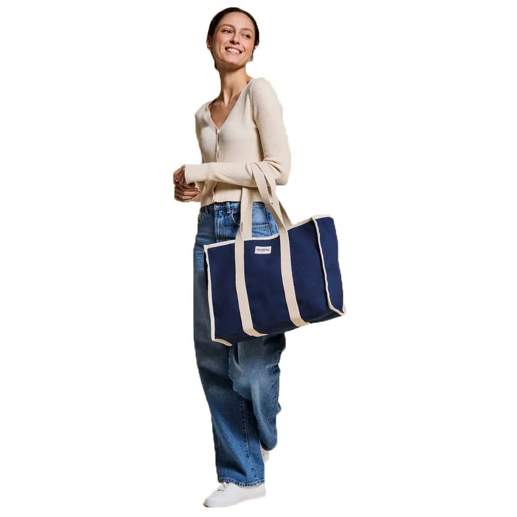 Manufactured from 100% organic cotton (500g/m2) is this navy blue unisex oscar tote bag by the designer Hindbag. It measures 30cm(height) x 42cm(width) x 15cm(depth). All the bags come complete with hindbag packaging. The Hindbag Oscar Tote Bag - Navy Blue effortlessly bridges the gap between relaxed weekend vibes and practical day-to-day utility. Versatile enough to go with a wide range of outfits, this iconic tote bag is equipped with a zip closure to keep your belongings secure, while an inner pocket offers convenient storage for your small essentials. Made thick organic cotton (500 g/m ), certified GOTS, this bag is durable enough to withstand everyday change, and beautiful enough that you ll want to take it along everywhere.
