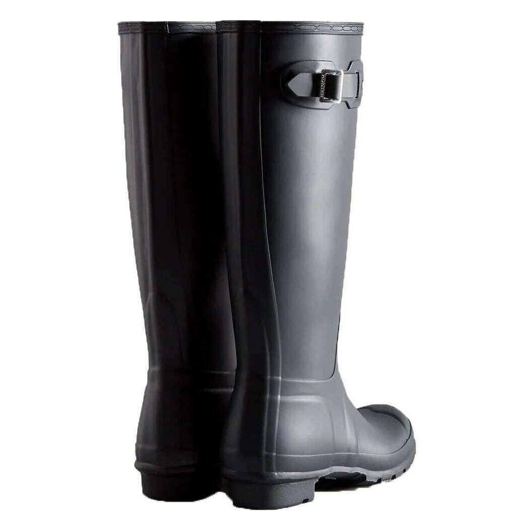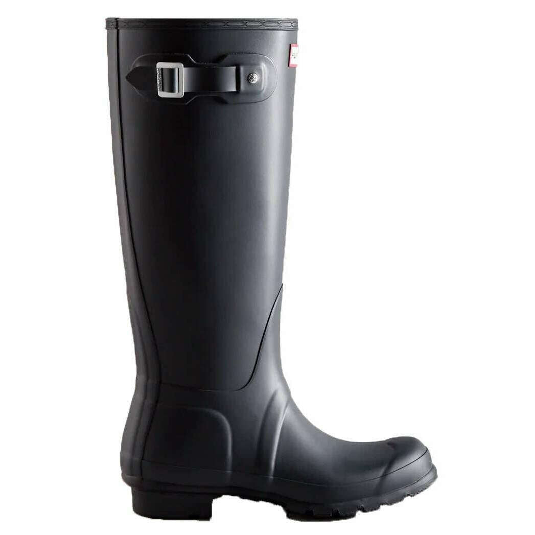 Designer Hunter has brought you this women's 100% rubber wellington boots using hunter navy tones. All the wellington boots come complete with hunter packaging. The Hunter Original Tall Wellington Boots - Hunter Navy is a core style in the Hunter collection, offering reliable protection since its introduction in 1956. Each pair is handcrafted from 28 hand?cut natural rubber parts, assembled over three days on a bespoke aluminium last, and vulcanised for superior waterproof performance. Designed with a matte finish, the boot includes the Hunter Original tread pattern along with an updated recycled polyester lining and insole for added comfort. Specially engineered to repel water and prevent moisture penetration, this certified vegan boot is an essential choice for wet?weather wear.